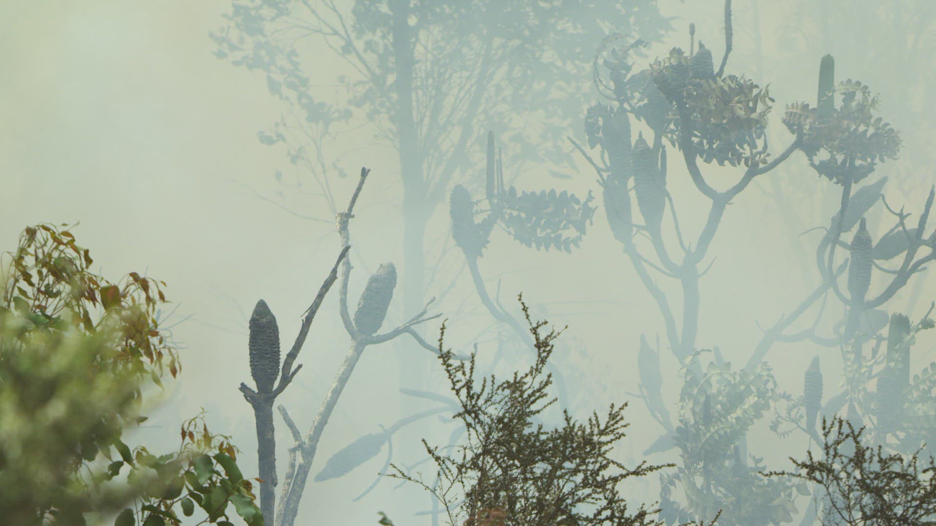 SLO MO WS Smoke in forest / Nannup; Western Australia; Australia
