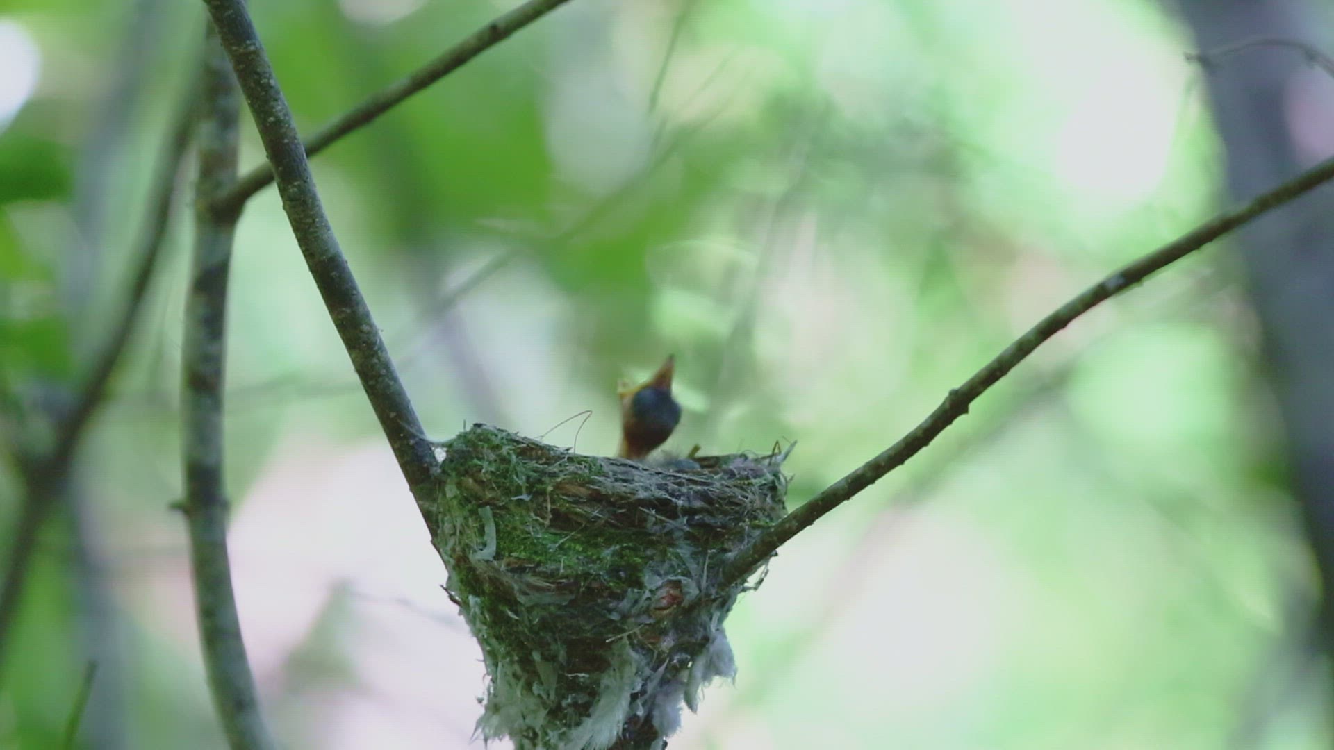 MS SELECTIVE FOCUS Young paradise flycatcher (Terpsiphone paradisi) in nest / China