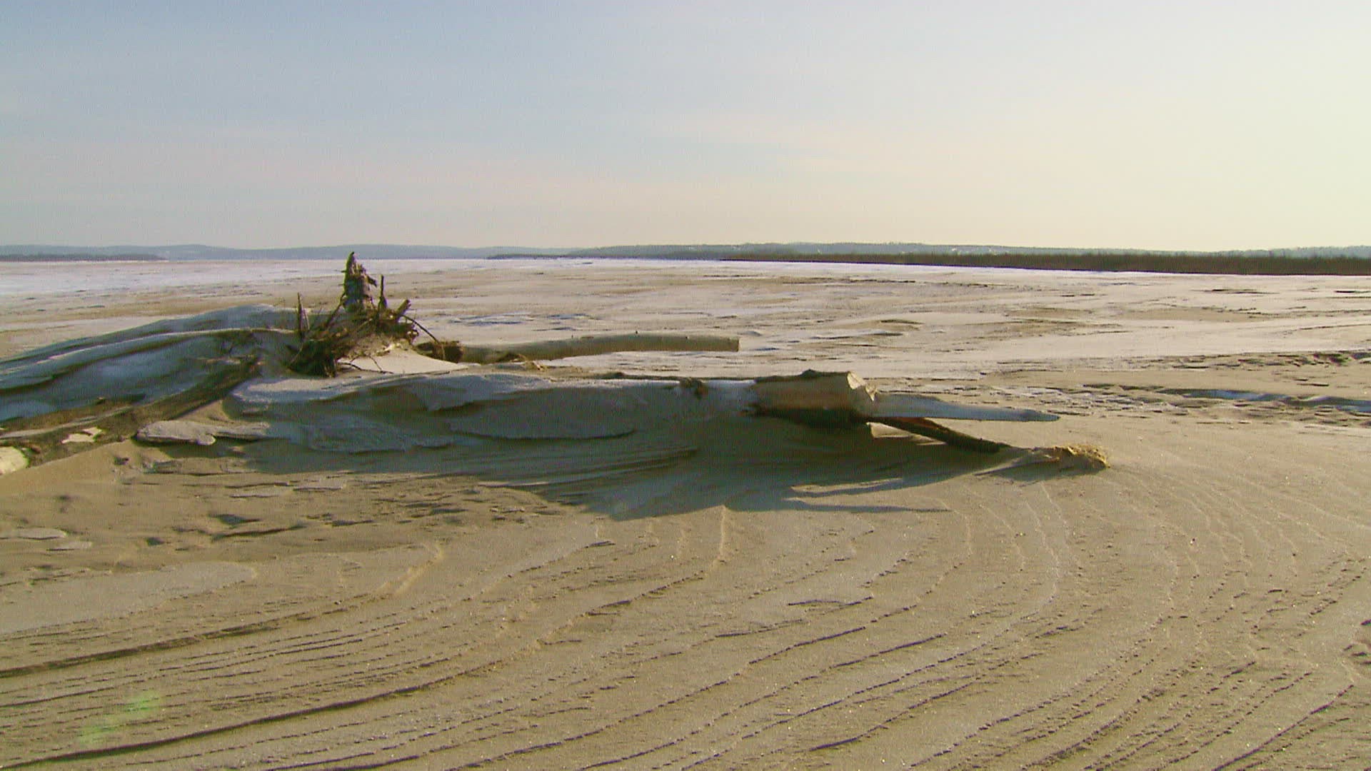 MS PAN Rock formation covered with ice and sand / Russia