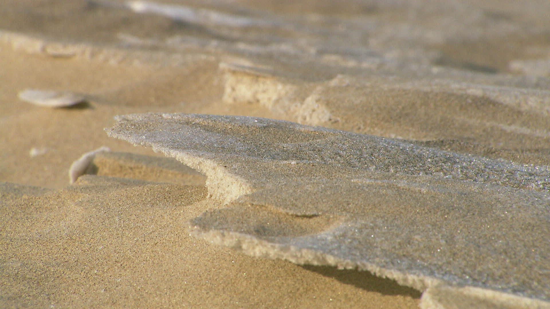 MS Rock formation covered with ice and sand / Russia