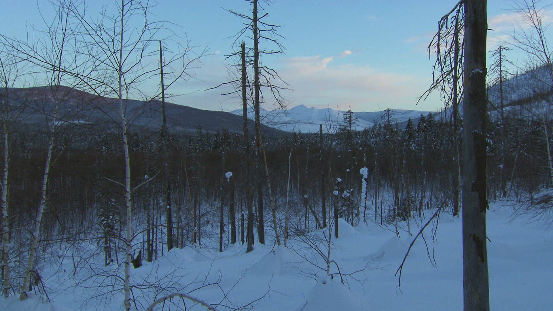 WS Bare trees in Sikhote Alin woodlands in snow / Russia
