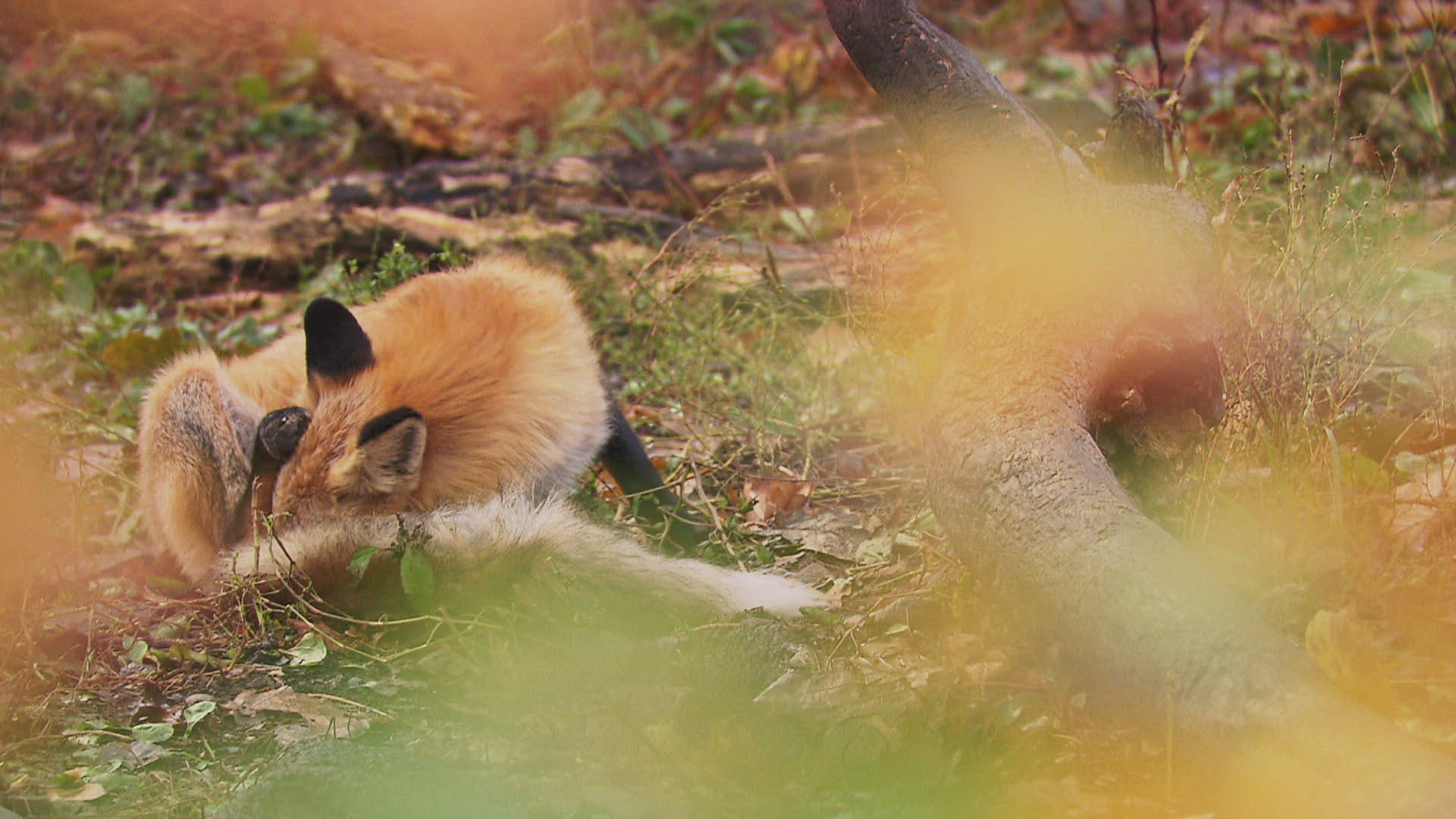 MS SELECTIVE FOCUS Wolf (Canis lupus) sneaking in forest / Russia