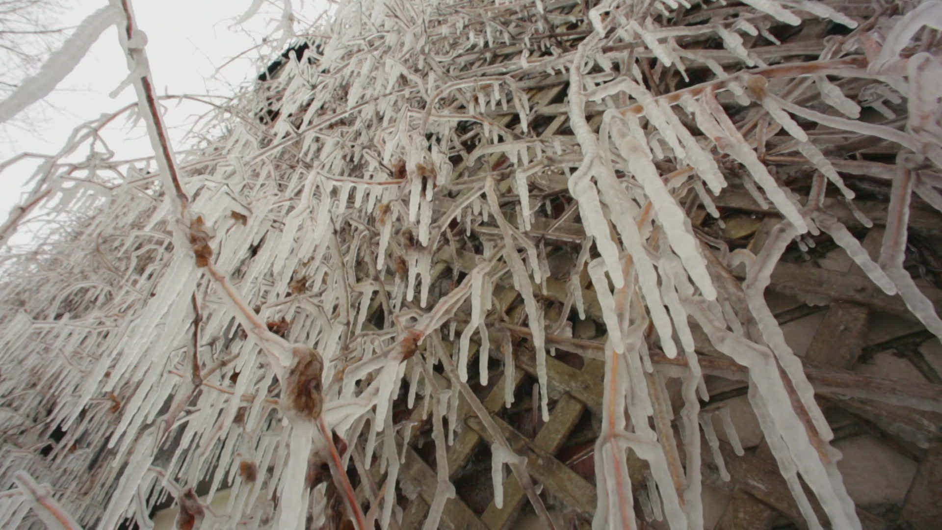 MS SELECTIVE FOCUS Wet spider web covering twigs / China