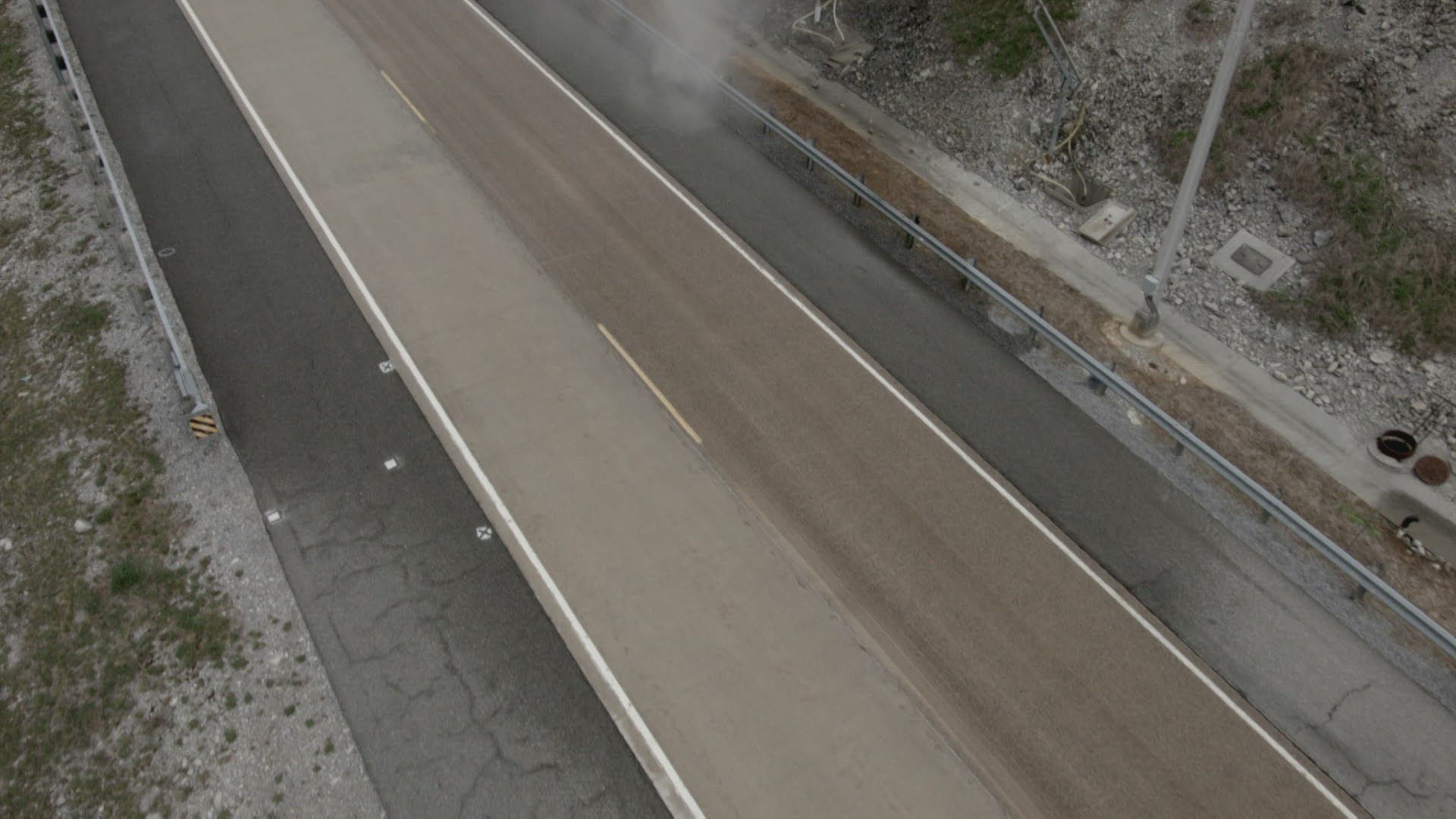 T/L WS POV Equipment producing artificial fog over road / Virginia; USA
