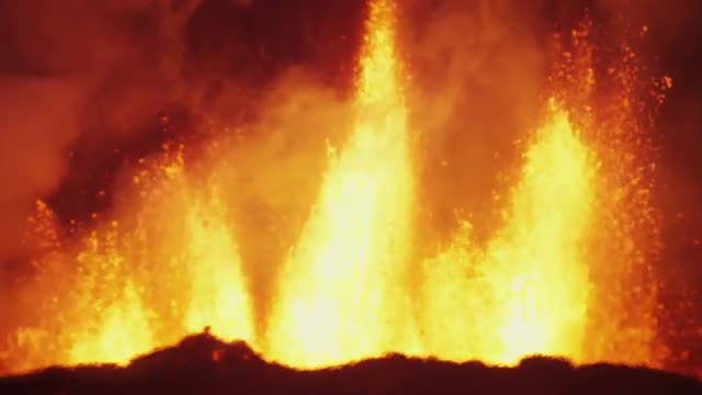 > Lava Fountains Explosions Molten Fire Eruption Holuhraun Volcano Iceland