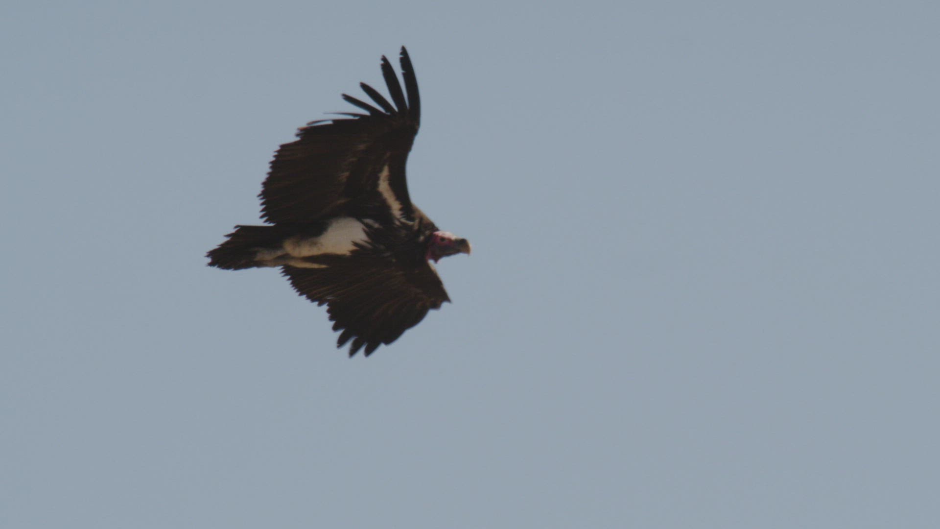 CU Lappet-Faced Vulture (Torgos tracheliotos) perching on treetop / Namibia