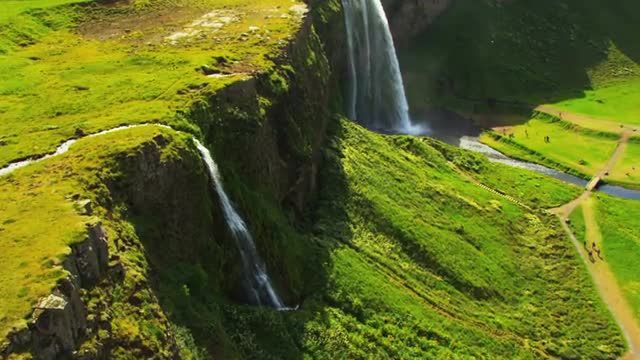 > Aerial Iceland glacial volcanic mountainous area snow meltwater