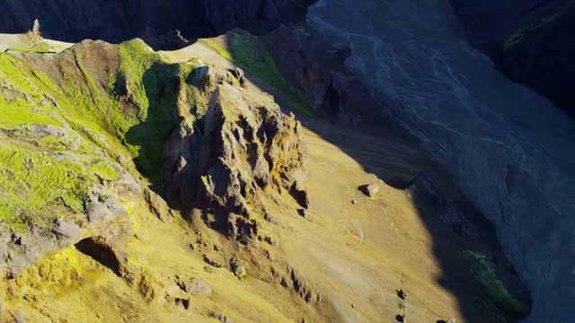 Aerial wilderness vegetation volcanic rock Landmannalaugar Iceland