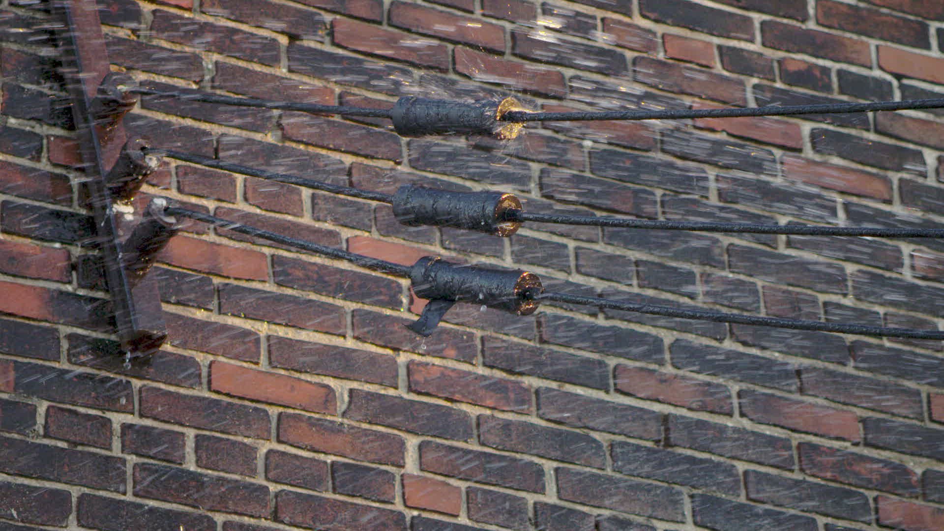 SLO MO MS Power line sprayed with water / Montreal; Quebec; Canada
