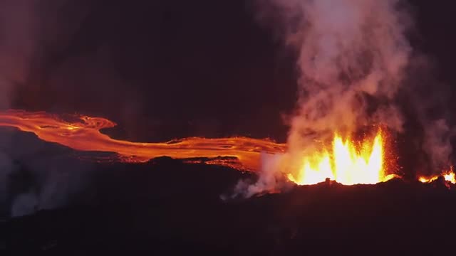 Aerial Night Volcano Lava Holuhraun Seismic Activity Land Fissures Iceland