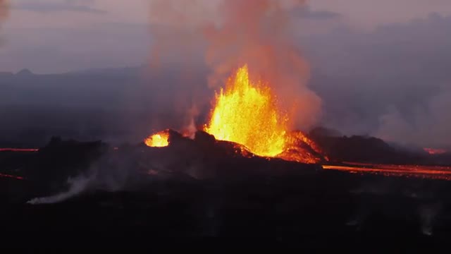 Aerial Red Hot Lava Flowing Holuhraun Volcano Eruption Travel Iceland