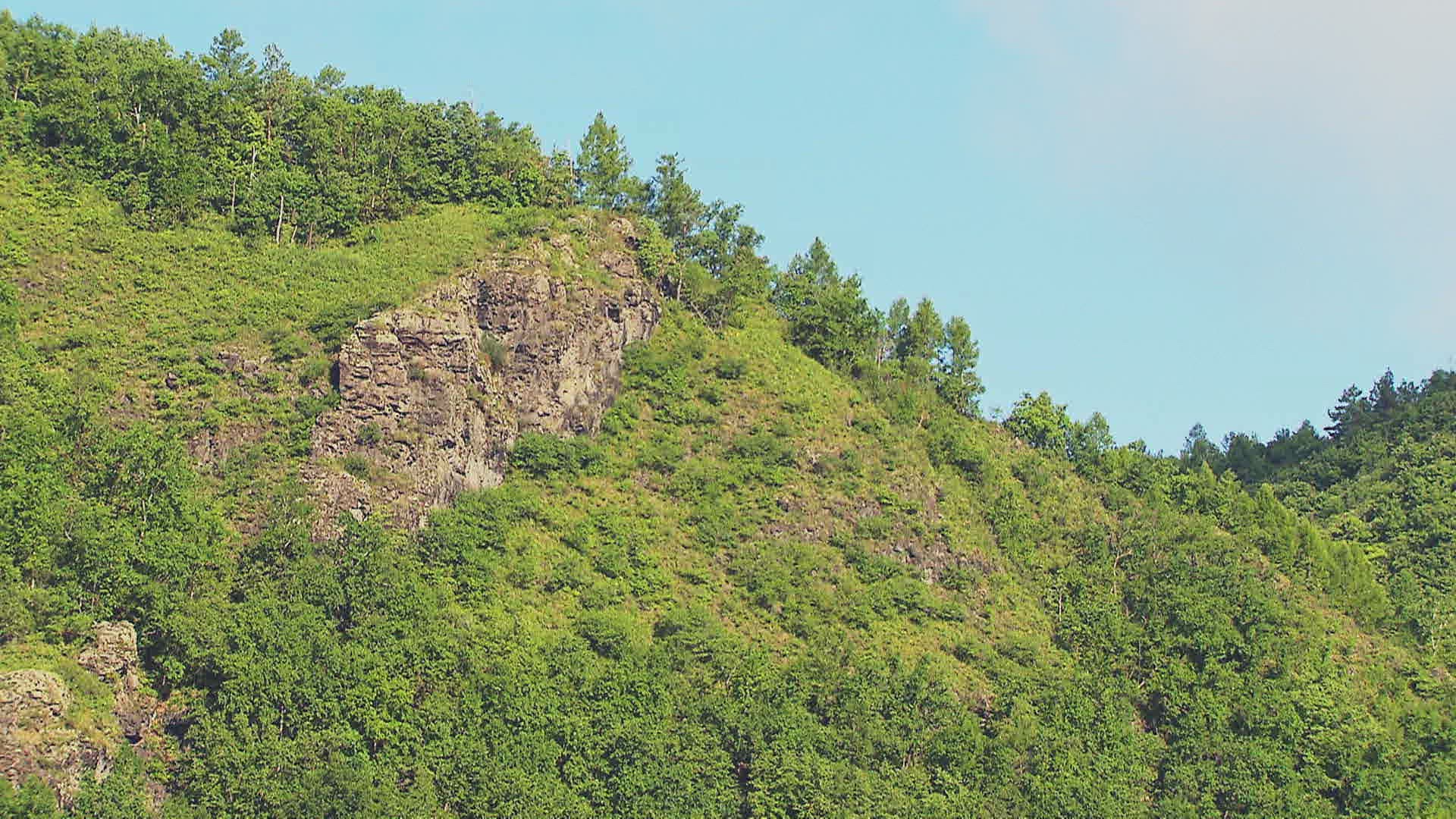 MS POV SHAKY Green hills under blue sky / Inner Mongolia; China