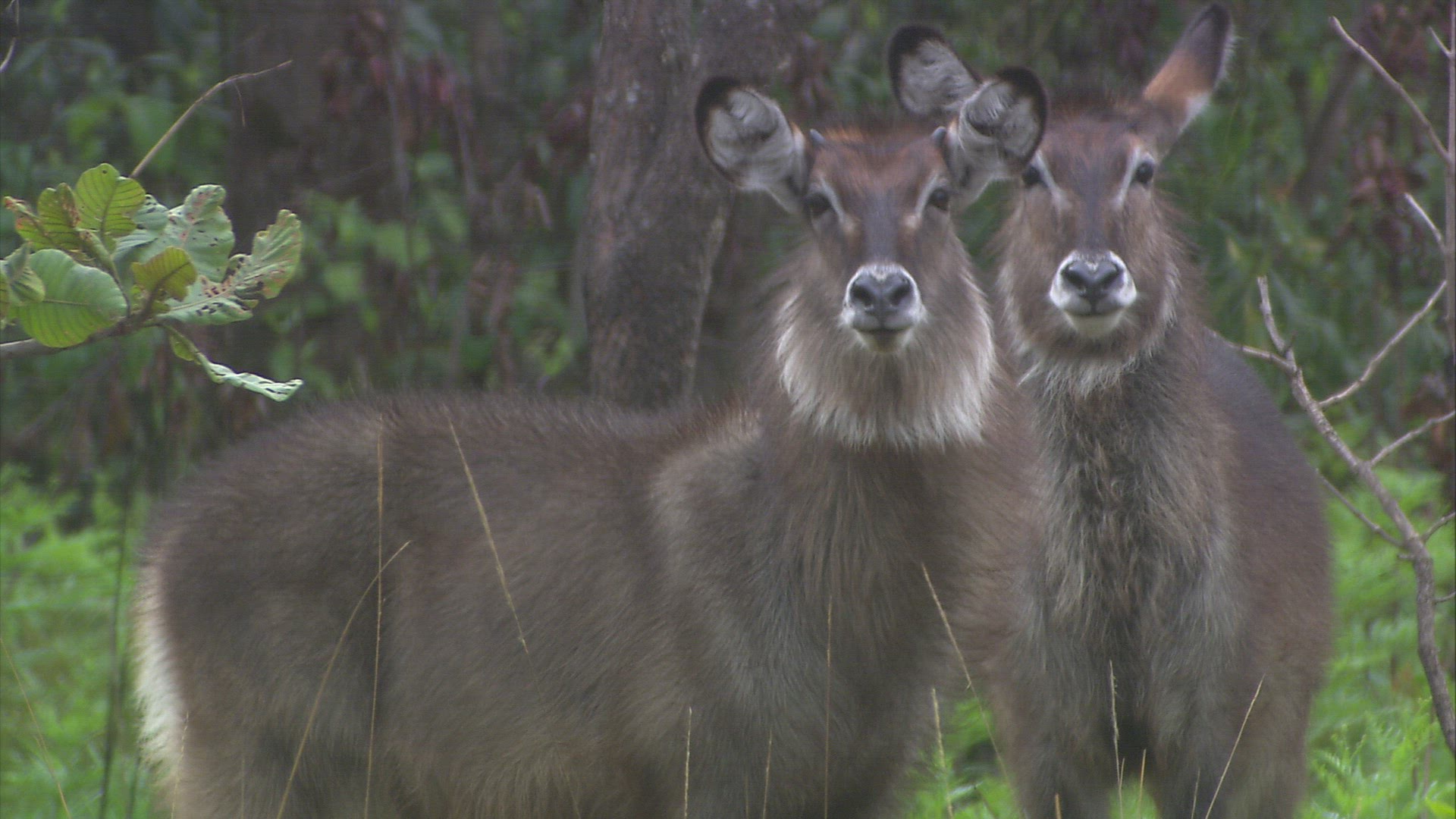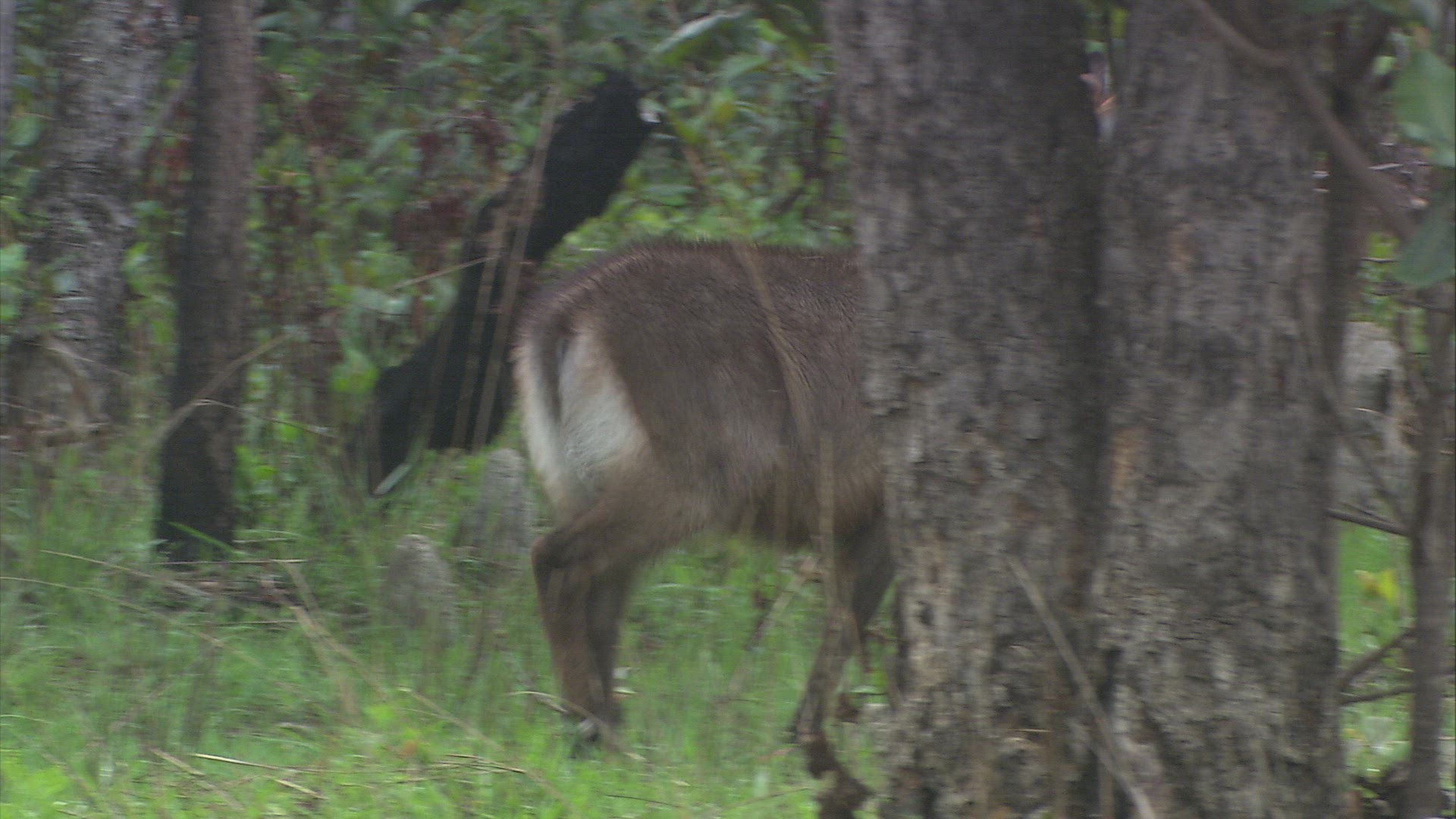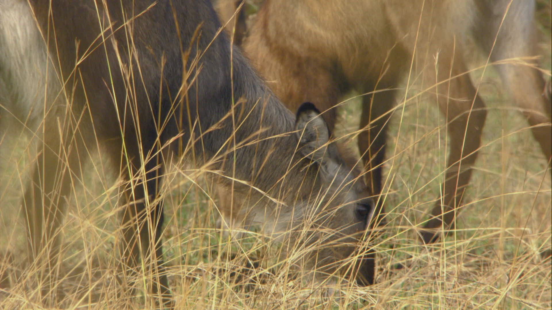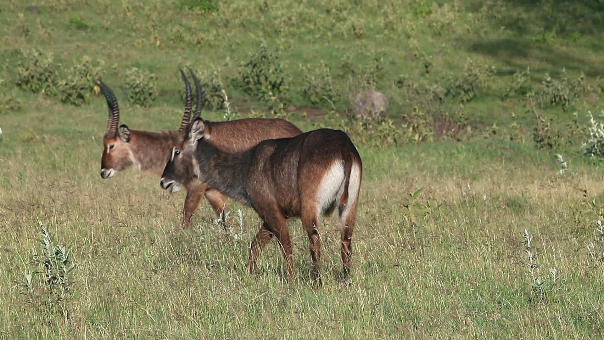 MS Waterbuck (Kobus ellipsiprymnus) and zebras (Equus quagga) in background / South Africa