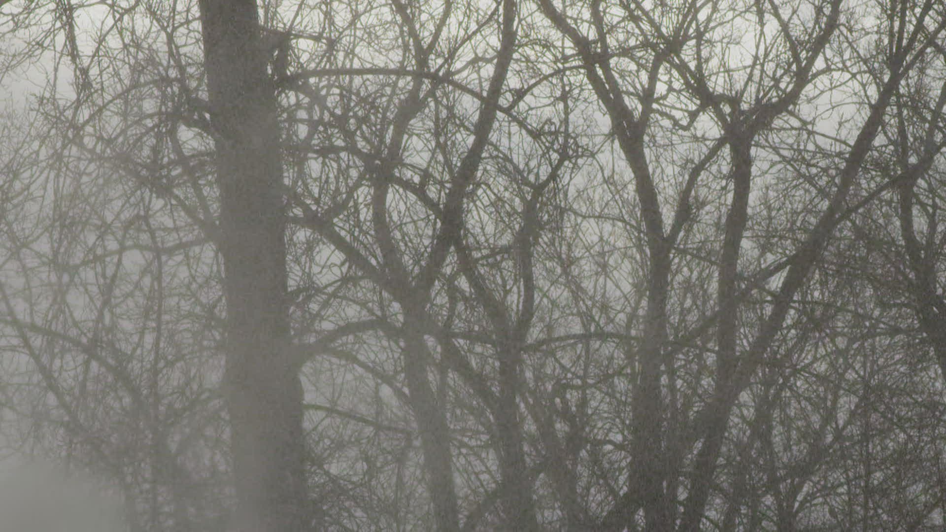 SLO MO MS Trees with smoke in foreground / Montreal; Quebec; Canada