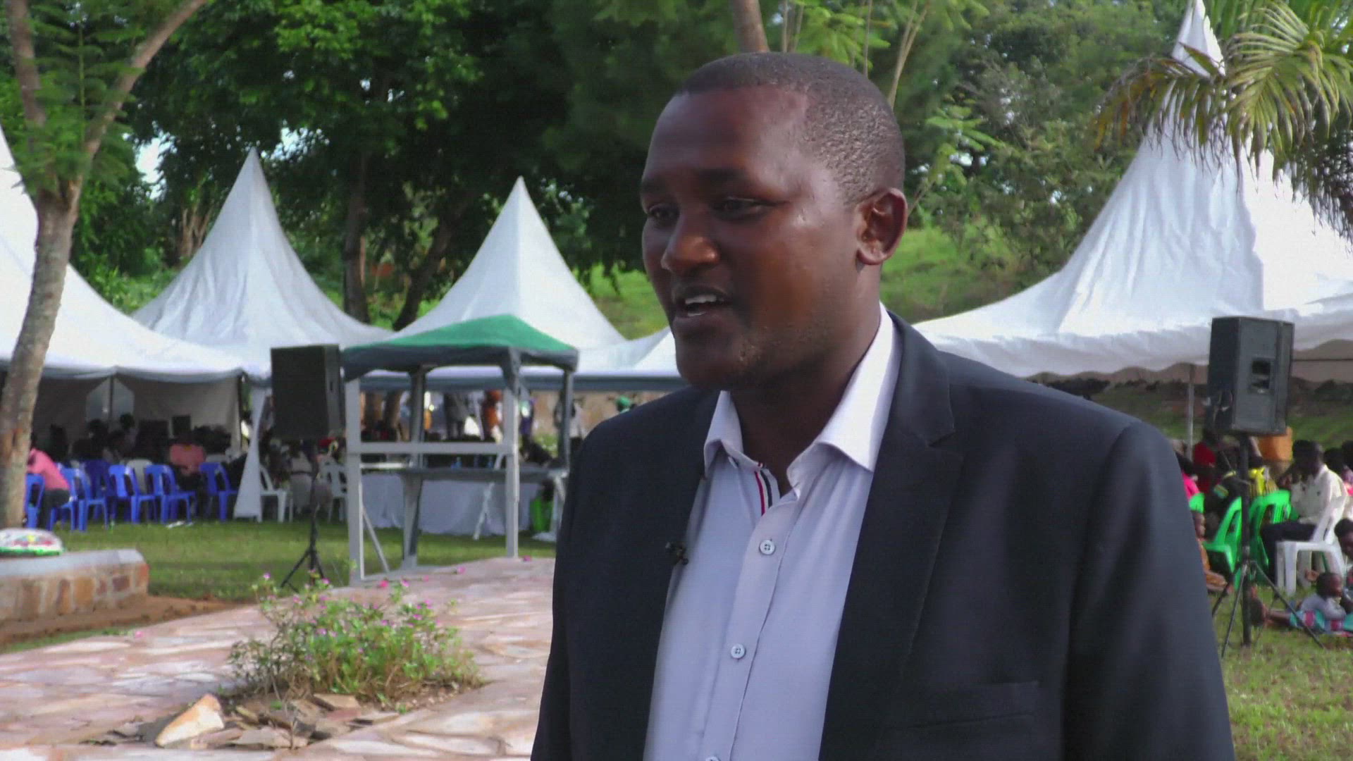 MS TU Giraffe (Giraffa camelopardalis) walking in tall grass / Uganda