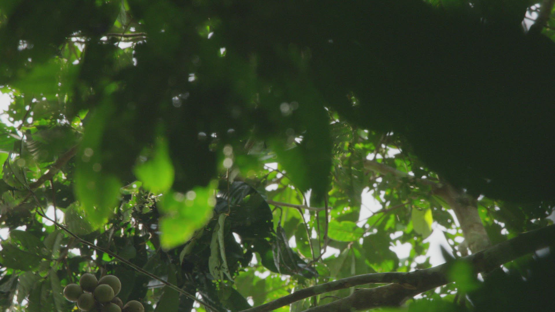 MS LA SELECTIVE FOCUS Sumatran Orangutan (Pongo abelii) moving between branches / Sumatra; Indonesia