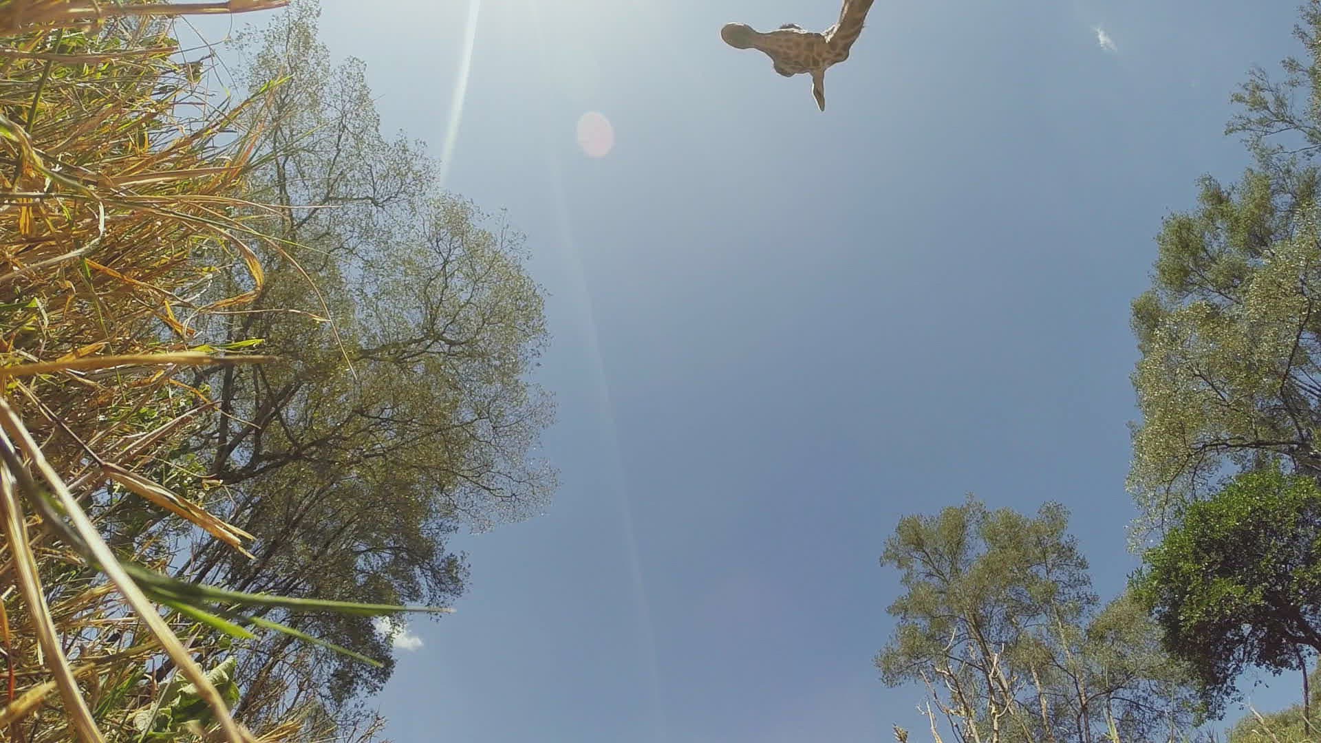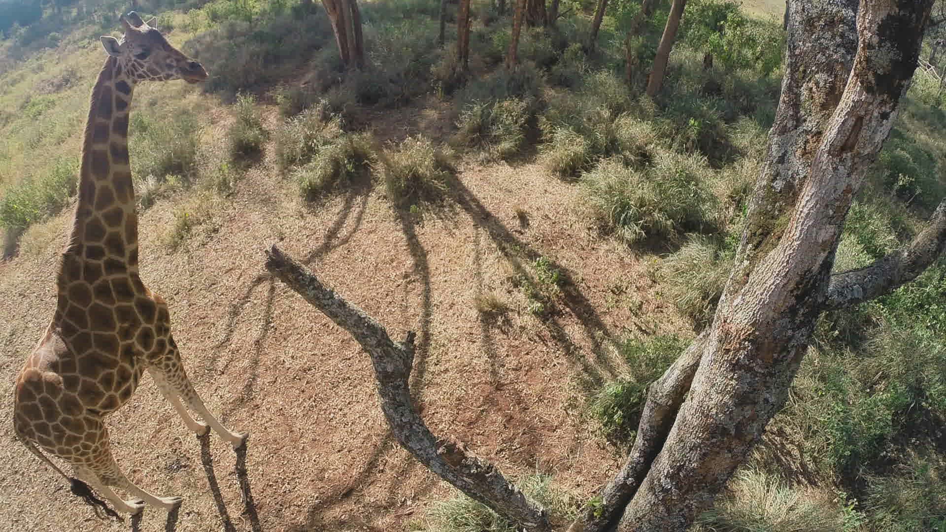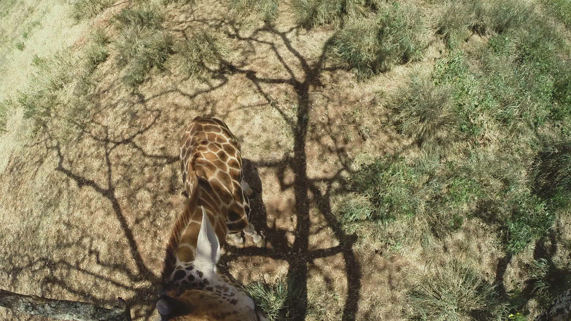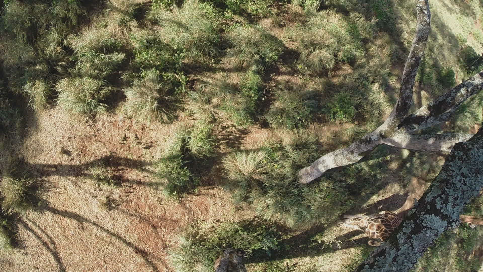 WS AERIAL Giraffes (Giraffa camelopardalis) running / Kenya