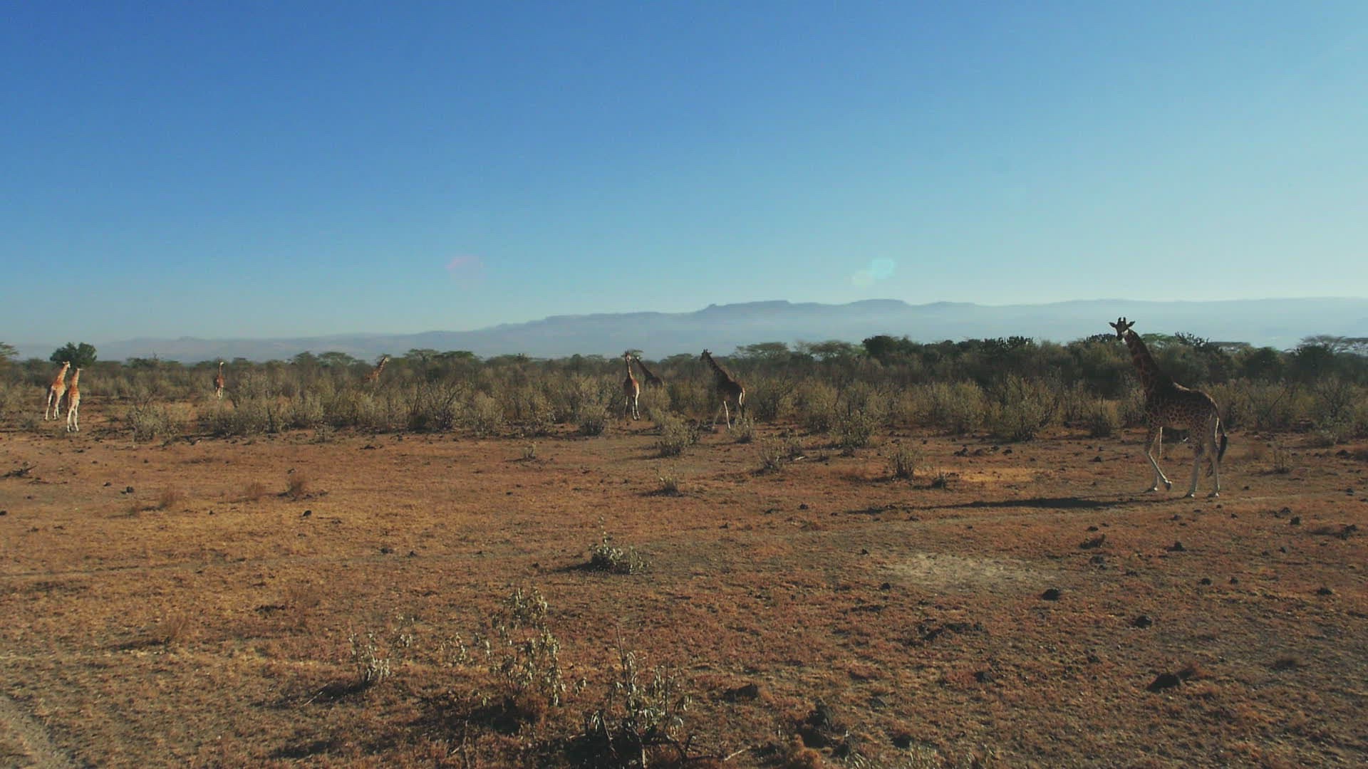 WS AERIAL Giraffe (Giraffa camelopardalis) in savannah / Kenya