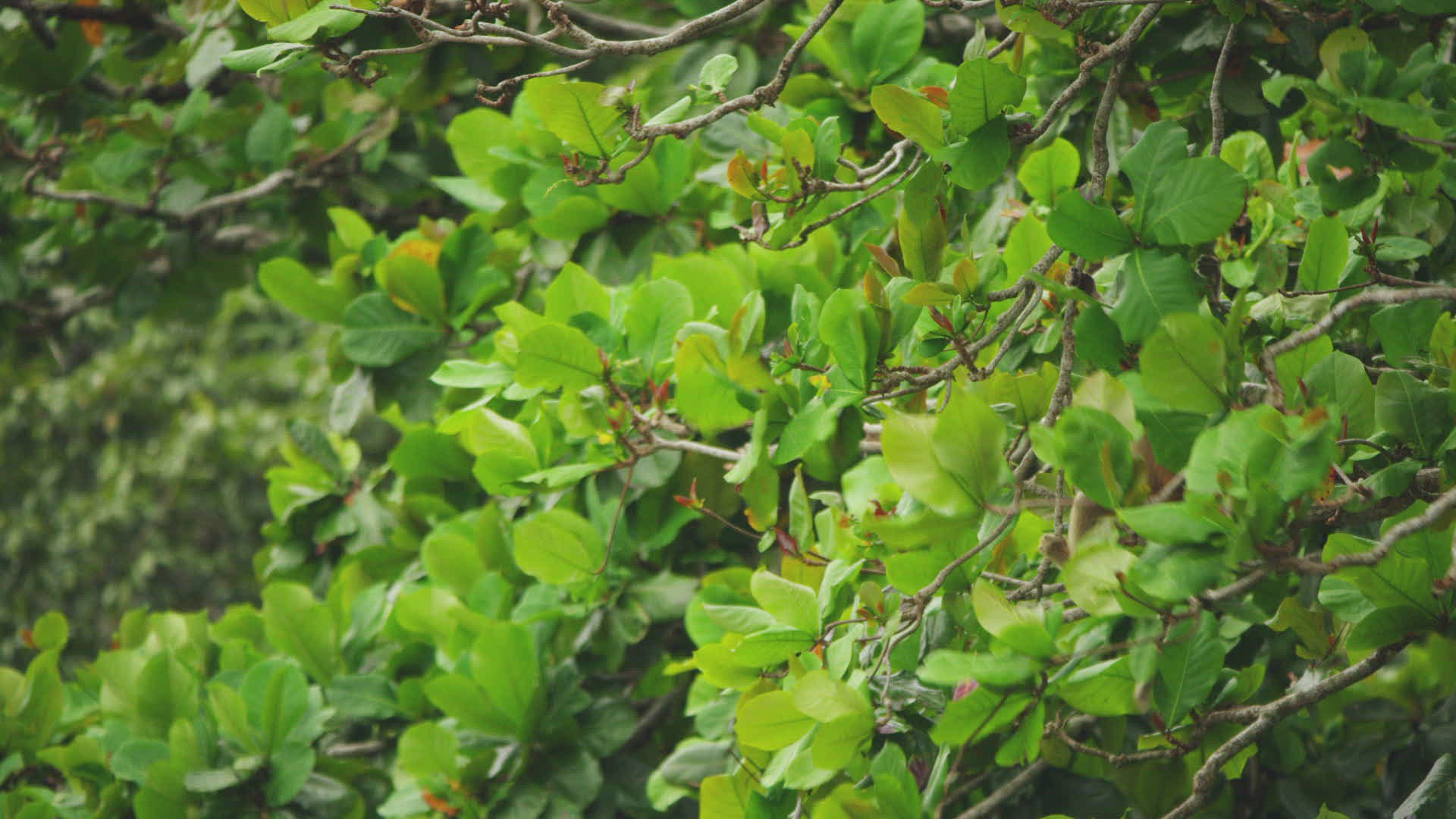 WS TS Proboscis Monkey (Nasalis larvatus) climbing then sitting down / Borneo; Indonesia