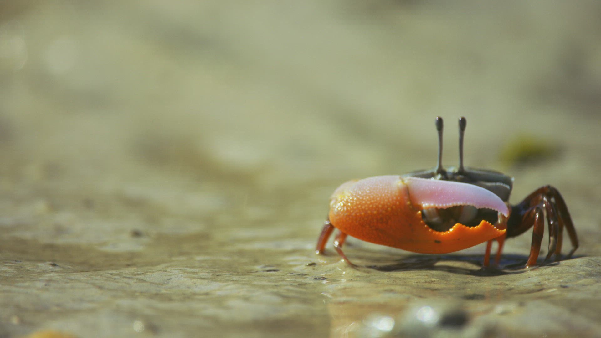 MS SELECTIVE FOCUS Fiddler crab (Ocypodidae) foraging on beach / Indonesia