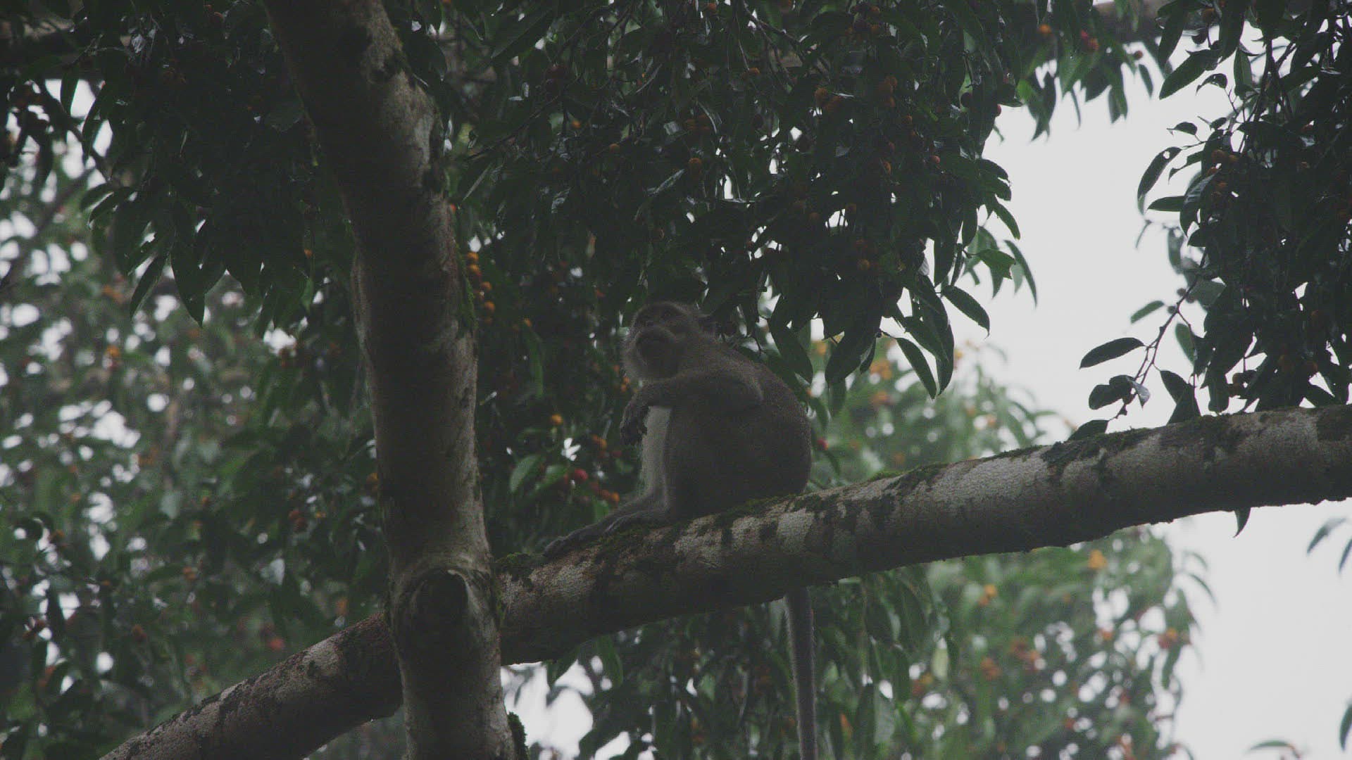 MS TS LA SELECTIVE FOCUS Long-tailed Macaque (Macaca fascicularis) climbing on tree / Indonesia