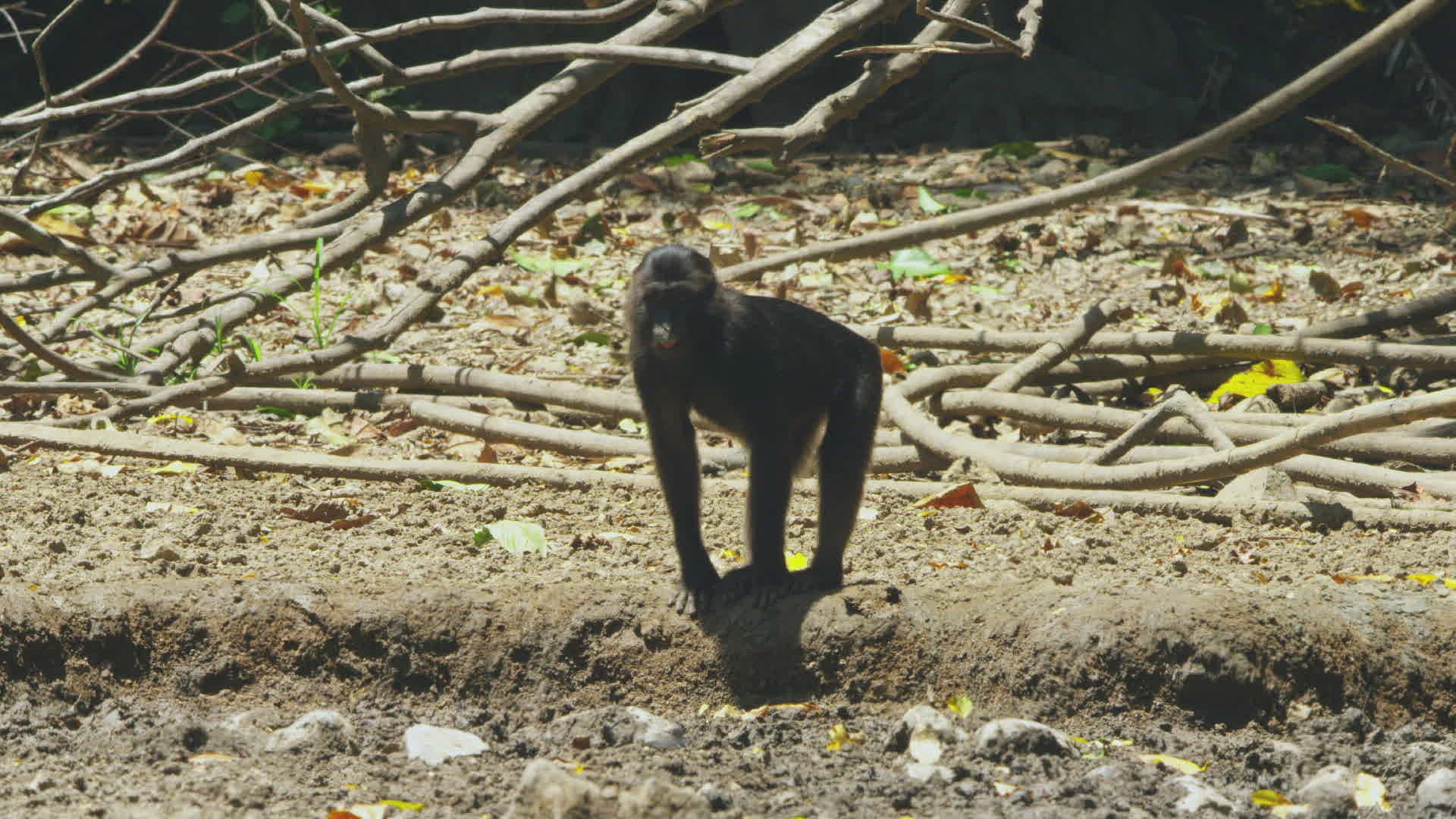 MS Sulawesi Crested Macaque (Macaca nigra) on dirt / Sulawesi; Indonesia