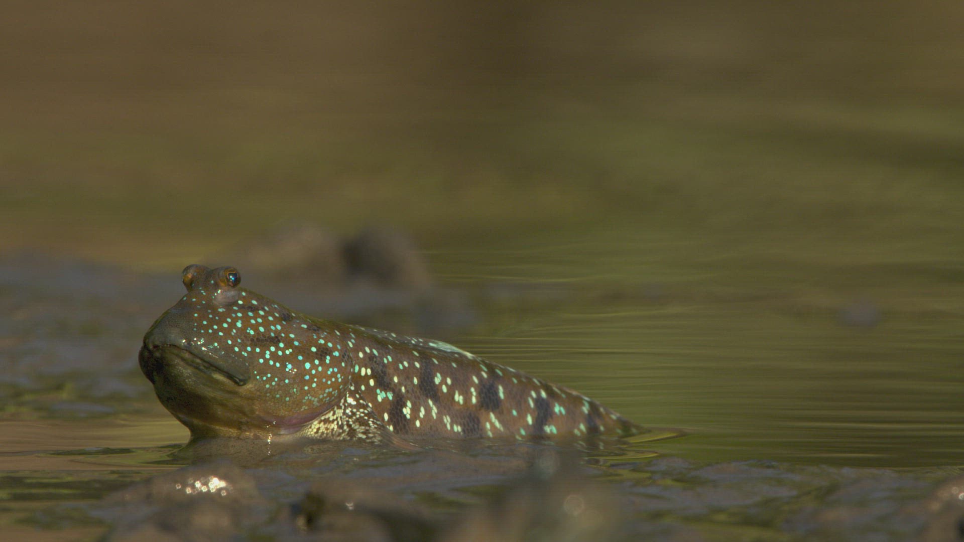 MS SELECTIVE FOCUS Blue-spotted Mudskipper (Boleophthalmus boddarti) in water / Borneo; Indonesia