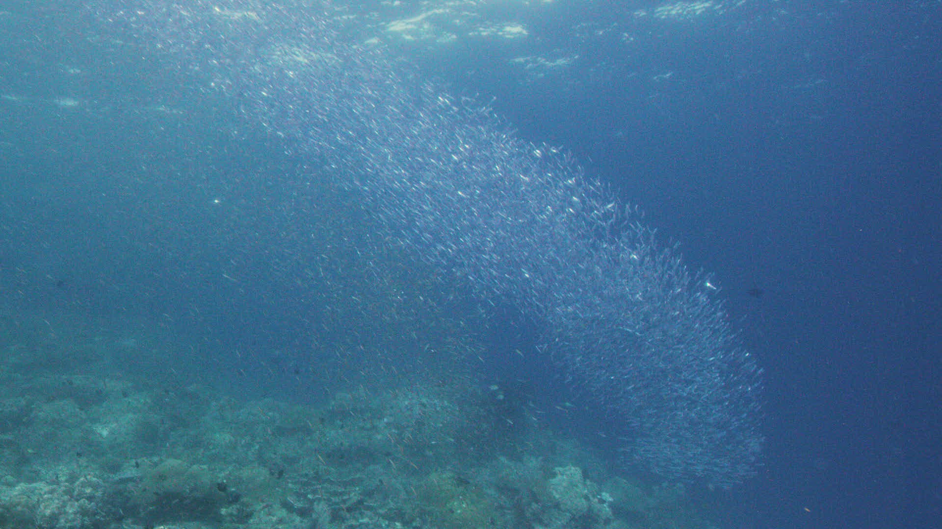 WS POV School of Goby (Parioglossus interruptus) swimming / Indonesia