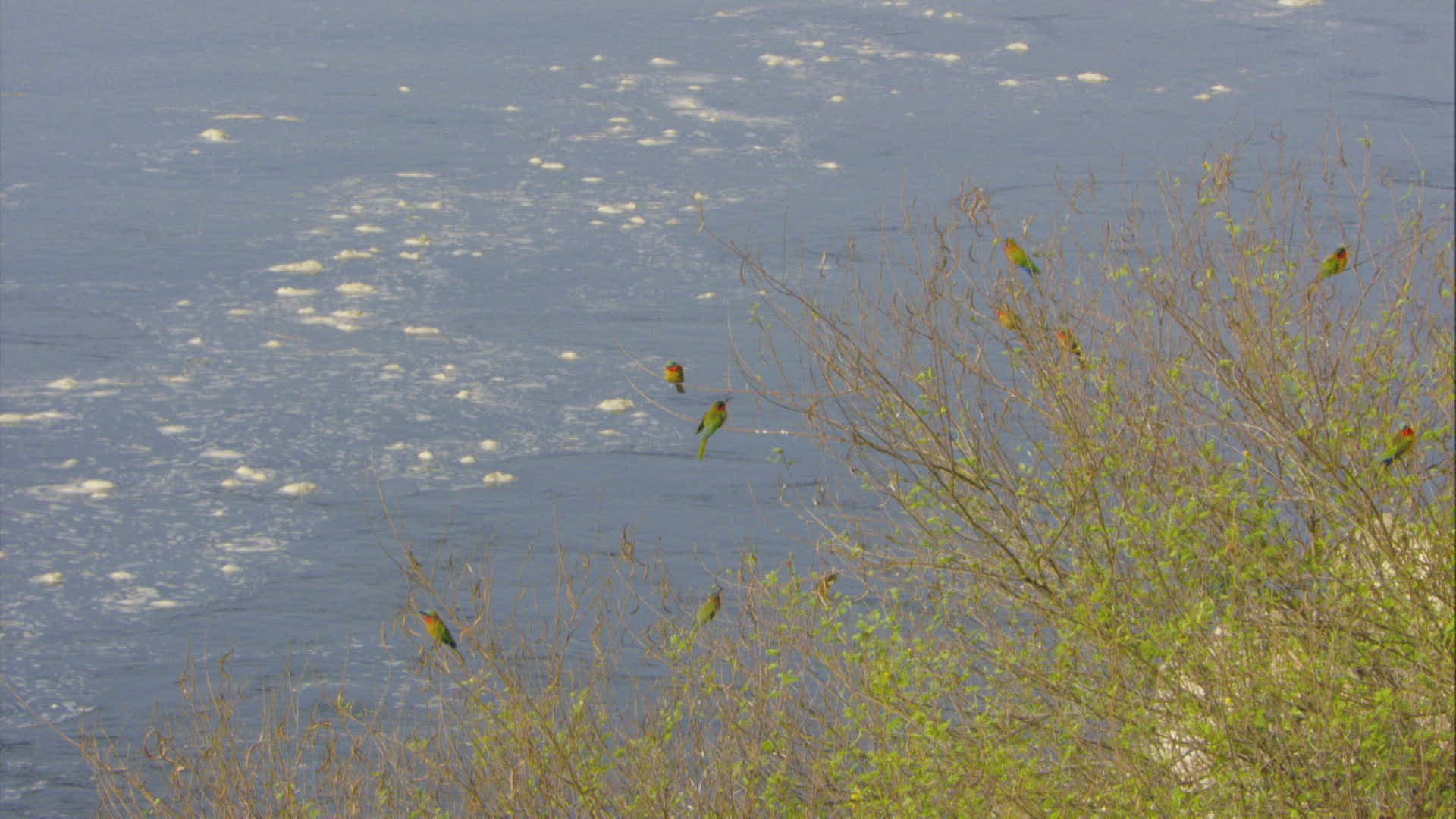 WS Red-throated Bee-eaters (Merops bulocki) perching by river / Murchison Falls Uganda; Nwoya; Northern Region; Uganda