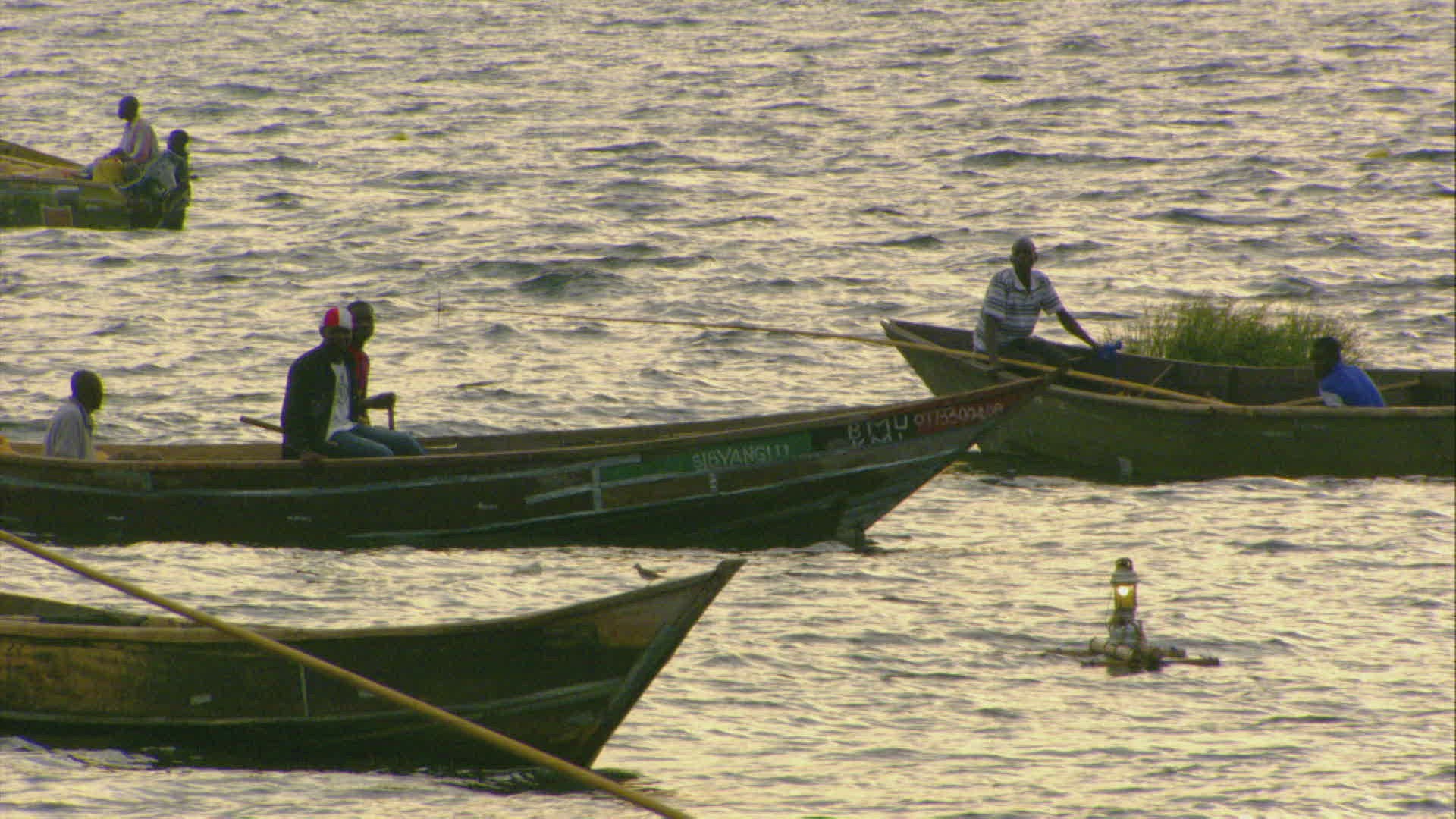 MS PAN Canoes floating on water at sunset on Tana Lake / Amhara; Ethiopia