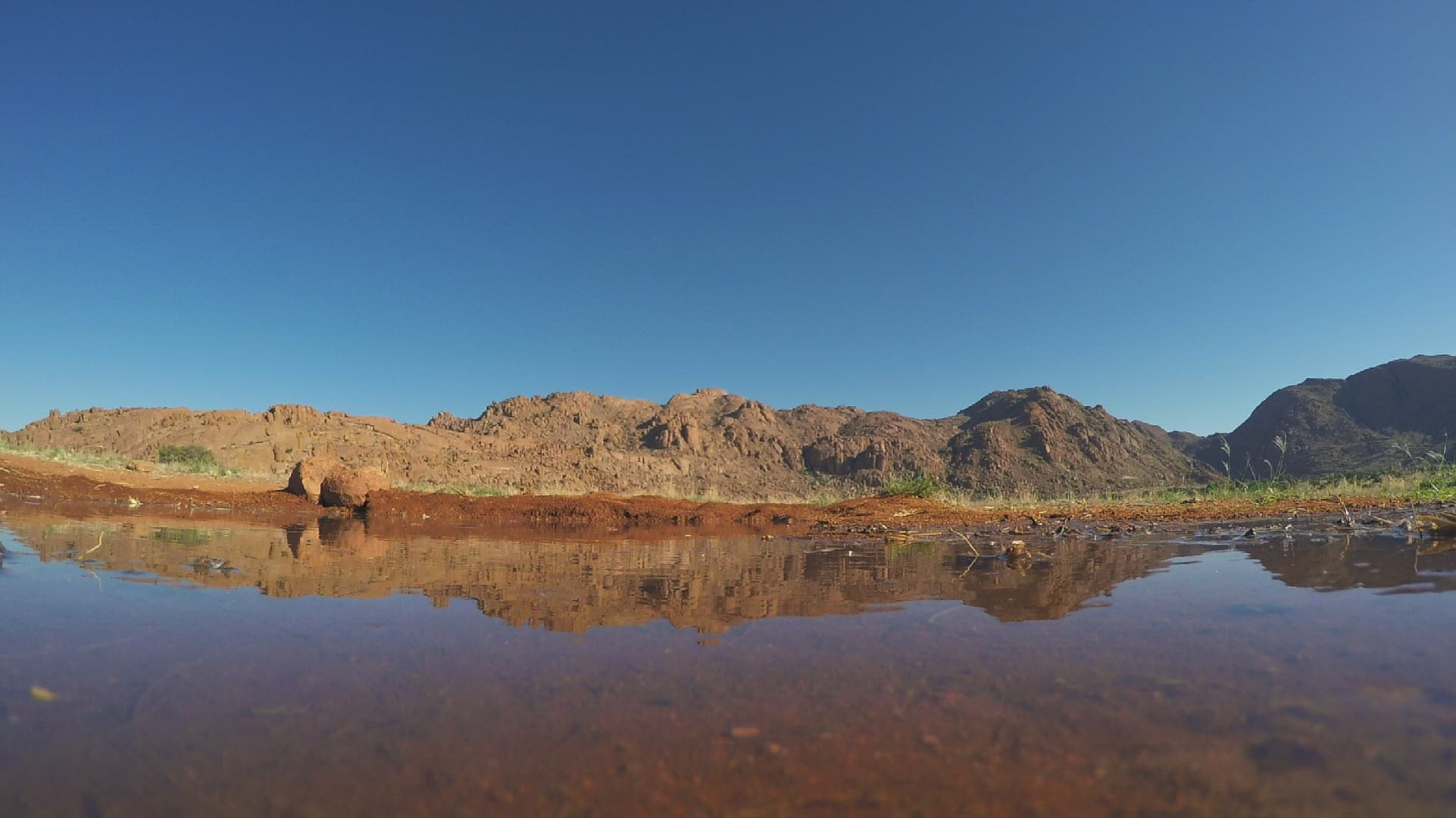 WS SLO MO Lake with hills and blue sky; Namib Desert / Namibia