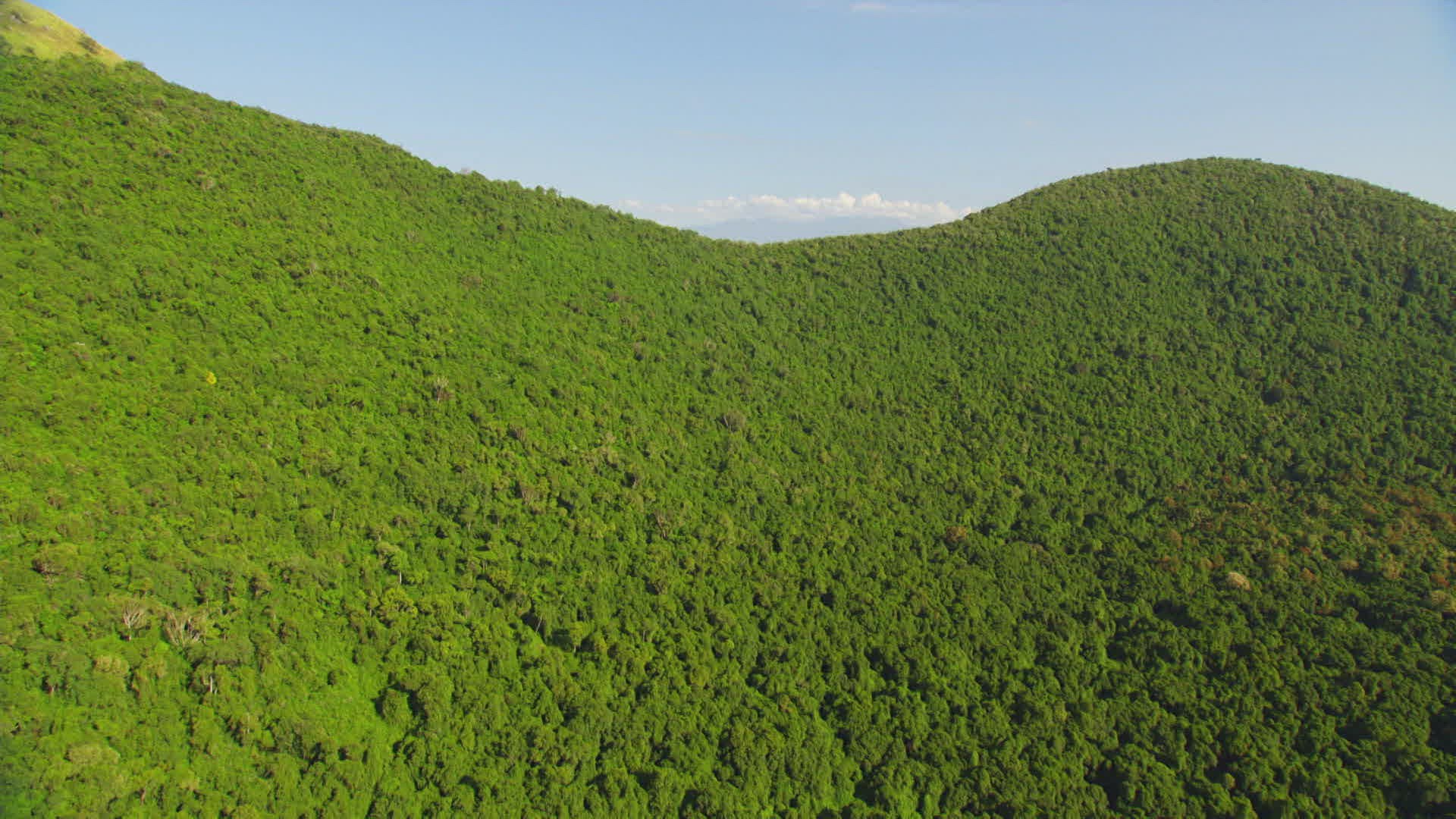 WS POV AERIAL Hills of crater in Queen Elisabeth National Park / Uganda