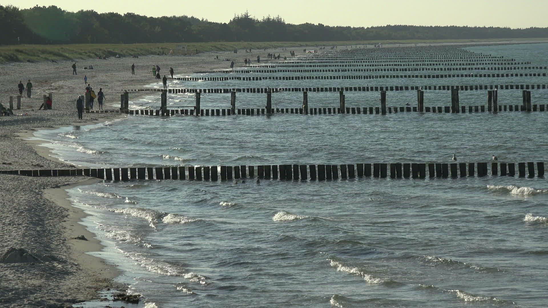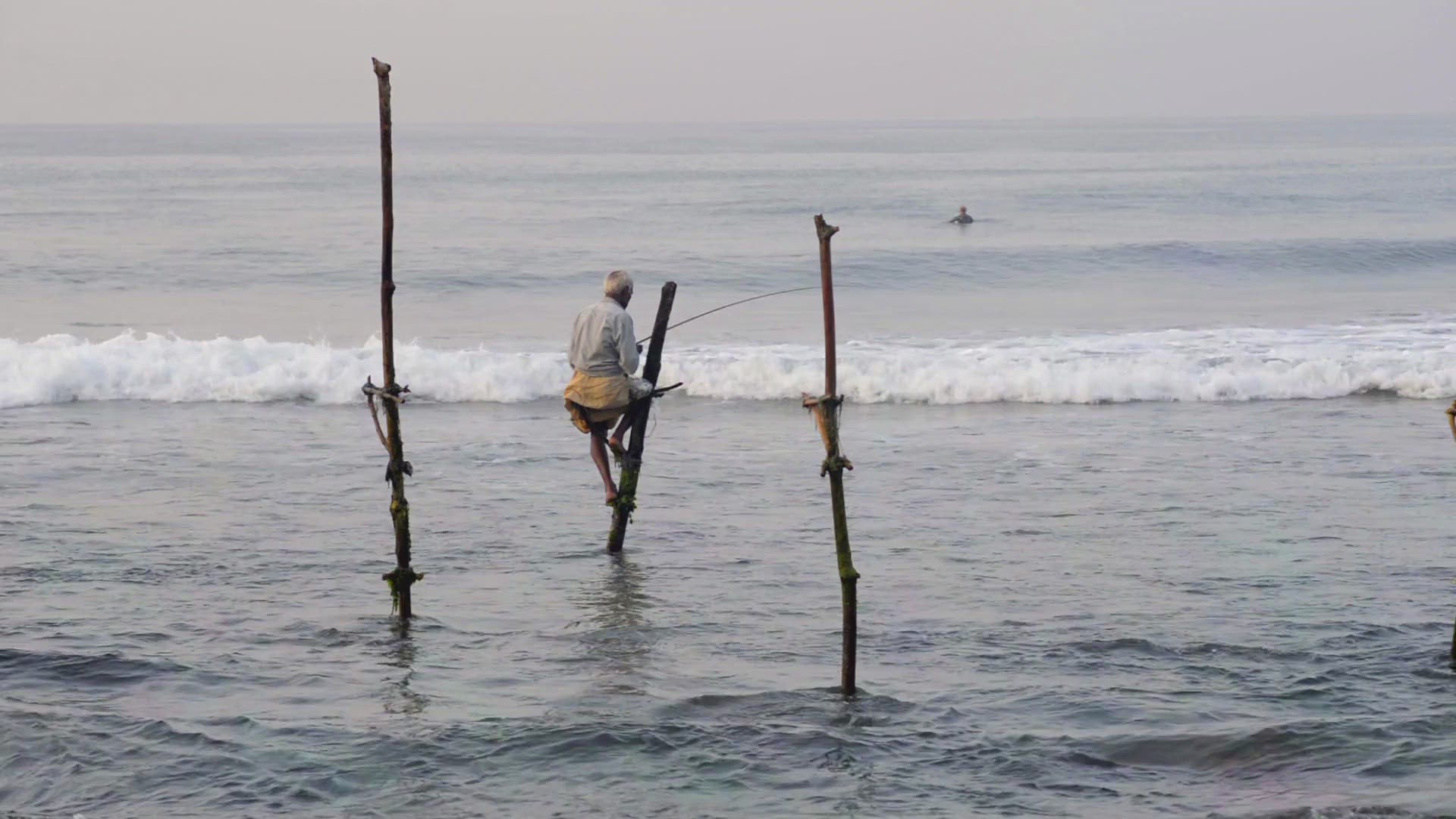 Waves splashing on wooden post of pier; San Diego; California; USA