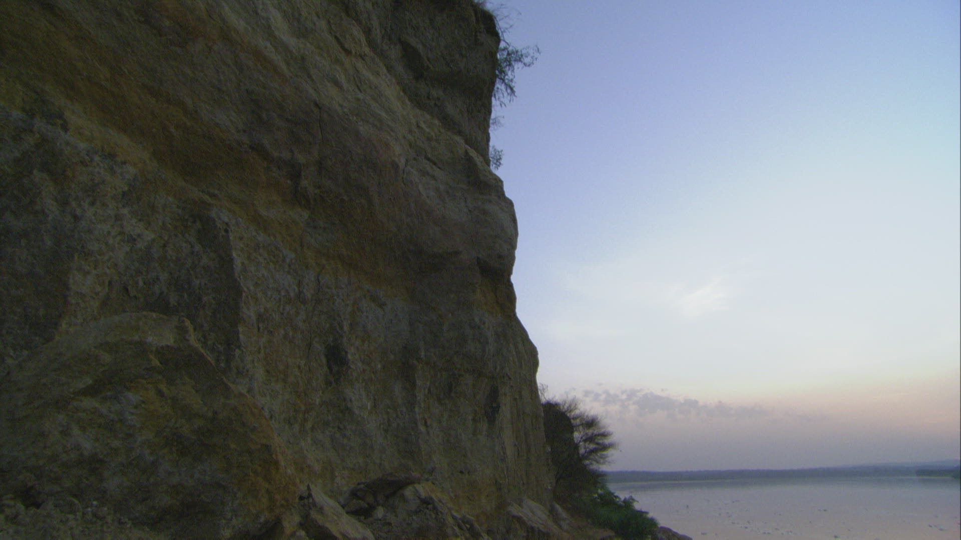 MS WS High cliffs over peaceful river; Nimule Rapids / Uganda
