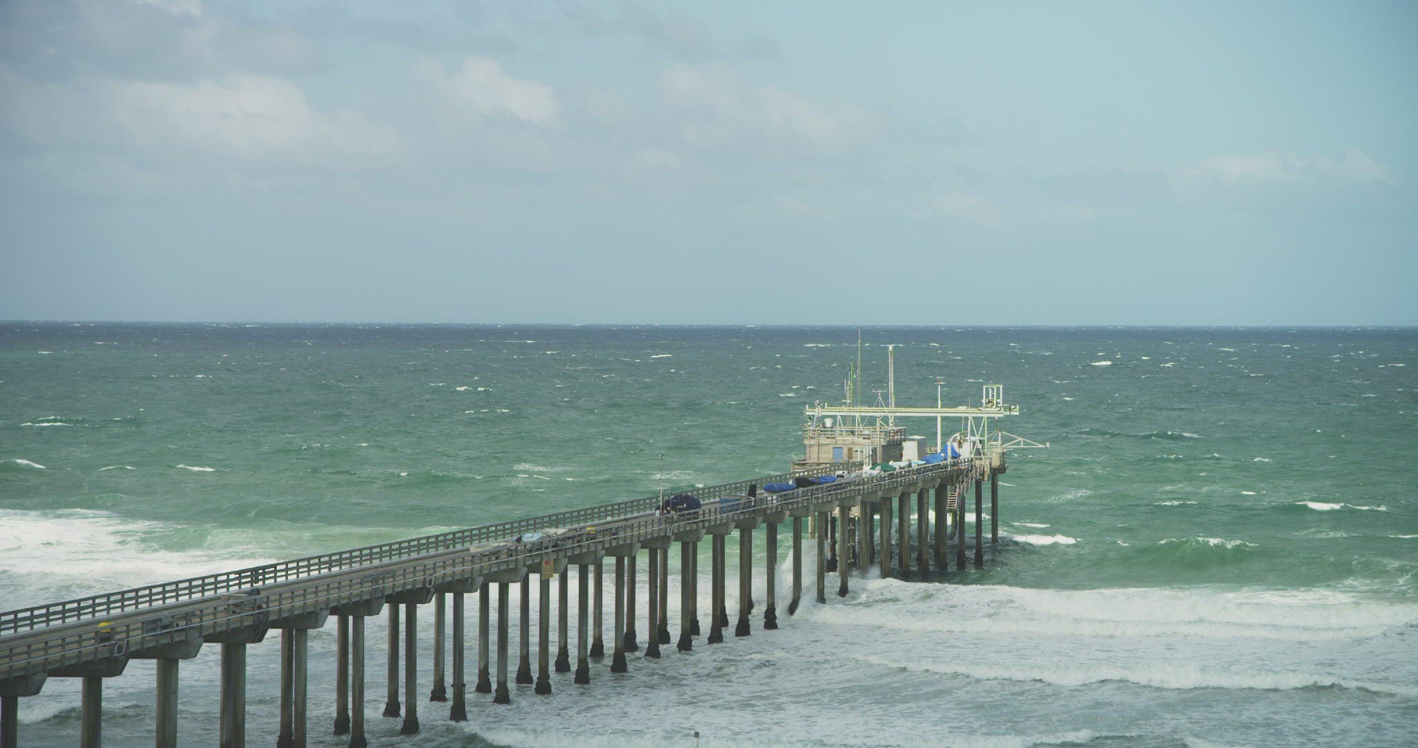 WS Wave splashing on pillars of pier / La Jolla; San Diego; California; USA