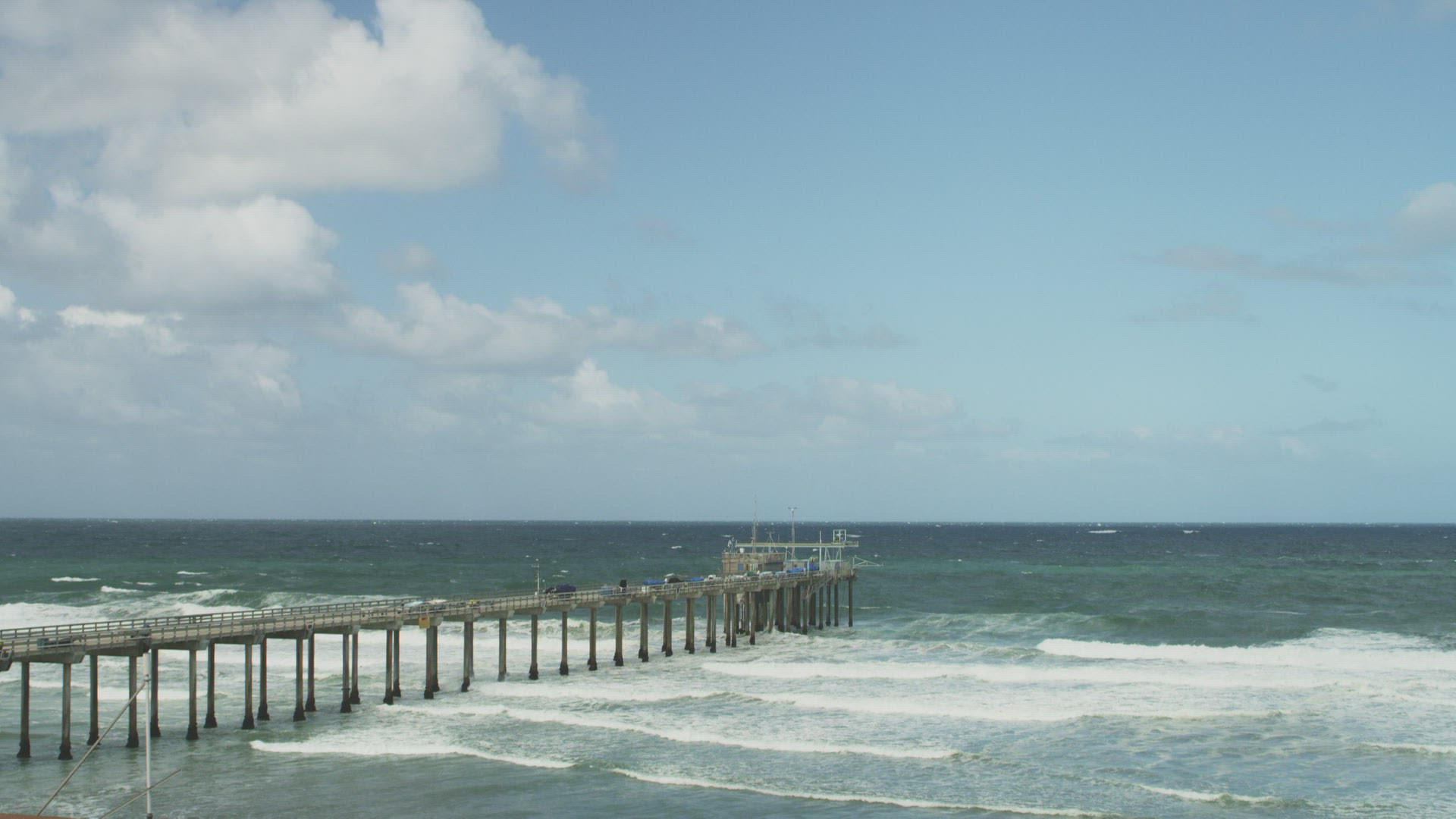 WS Wave splashing on pillars of pier / La Jolla; San Diego; California; USA