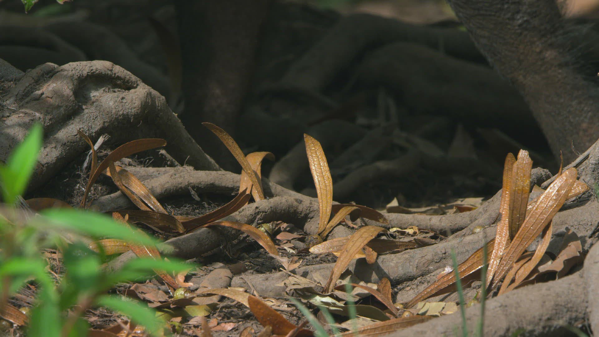 MS SELECTIVE FOCUS Bearded Pig (Sus barbatus) and Dipterocarp trees (Dipterocarp spp.) roots / Borneo; Indonesia