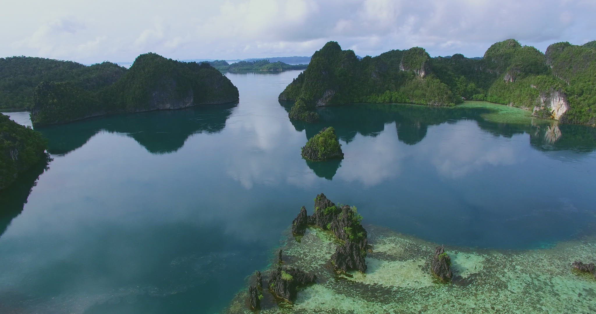 WS AERIAL Sky over rocky archipelago / Borneo; Indonesia