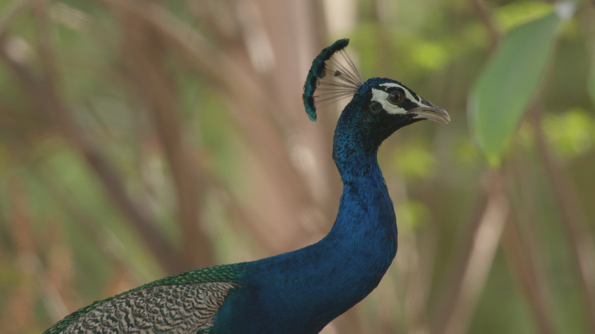 MS Blue peafowl (Pavo cristatus) looking around / Rajasthan; India