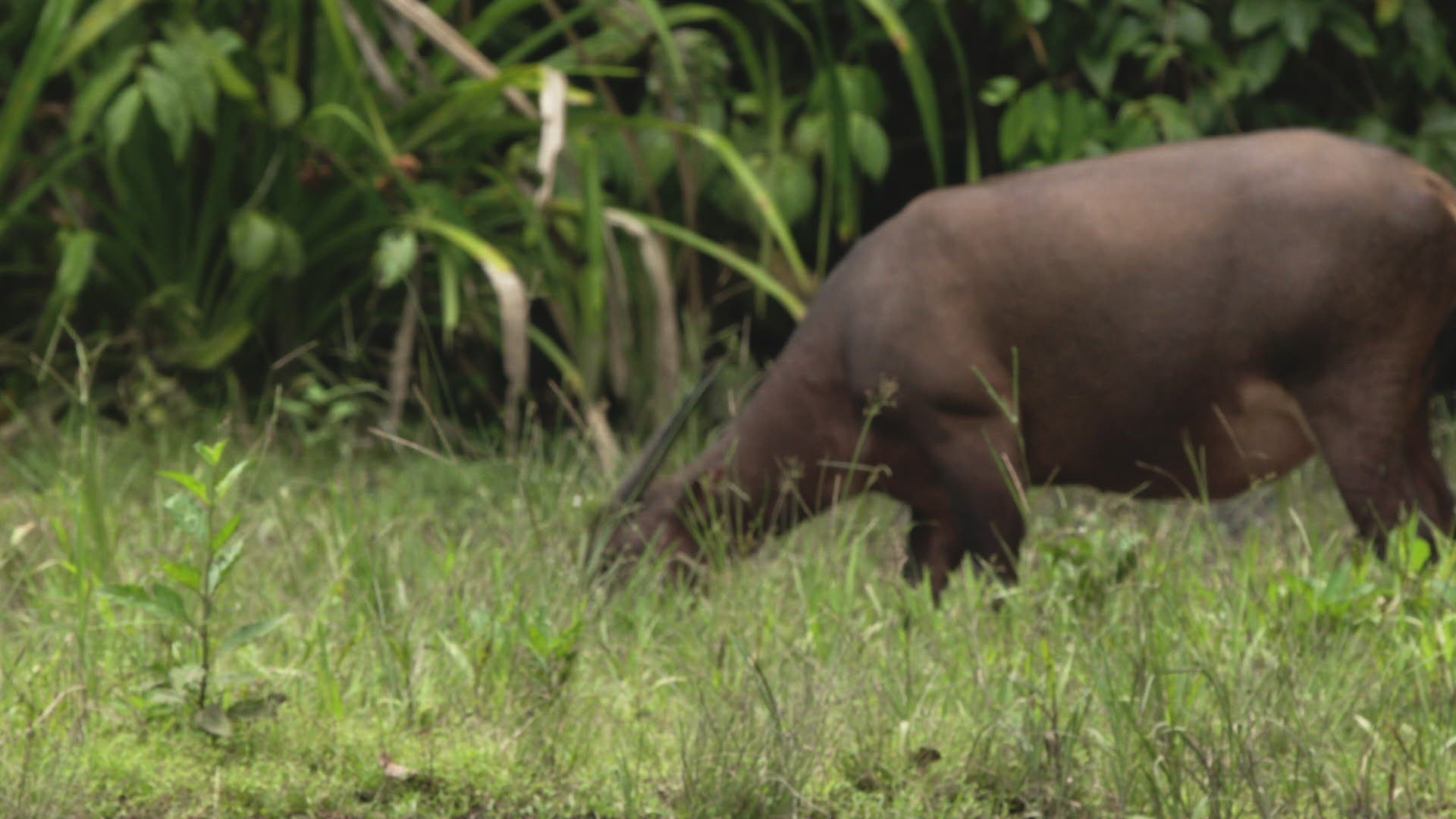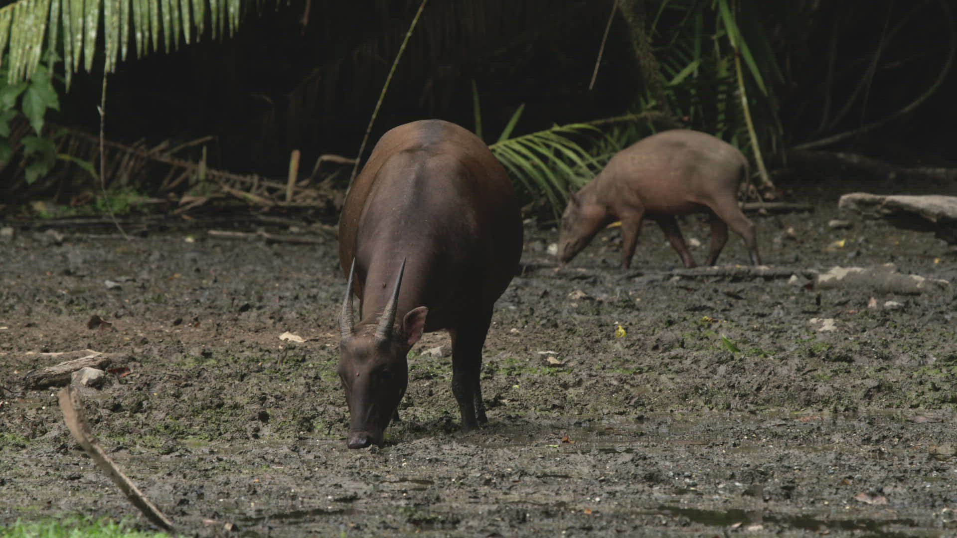 WS TS Babirusas (Babyrousa celebensis) and Lowland Anoa (Bubalus depressicornis) / Sulawesi; Indonesia