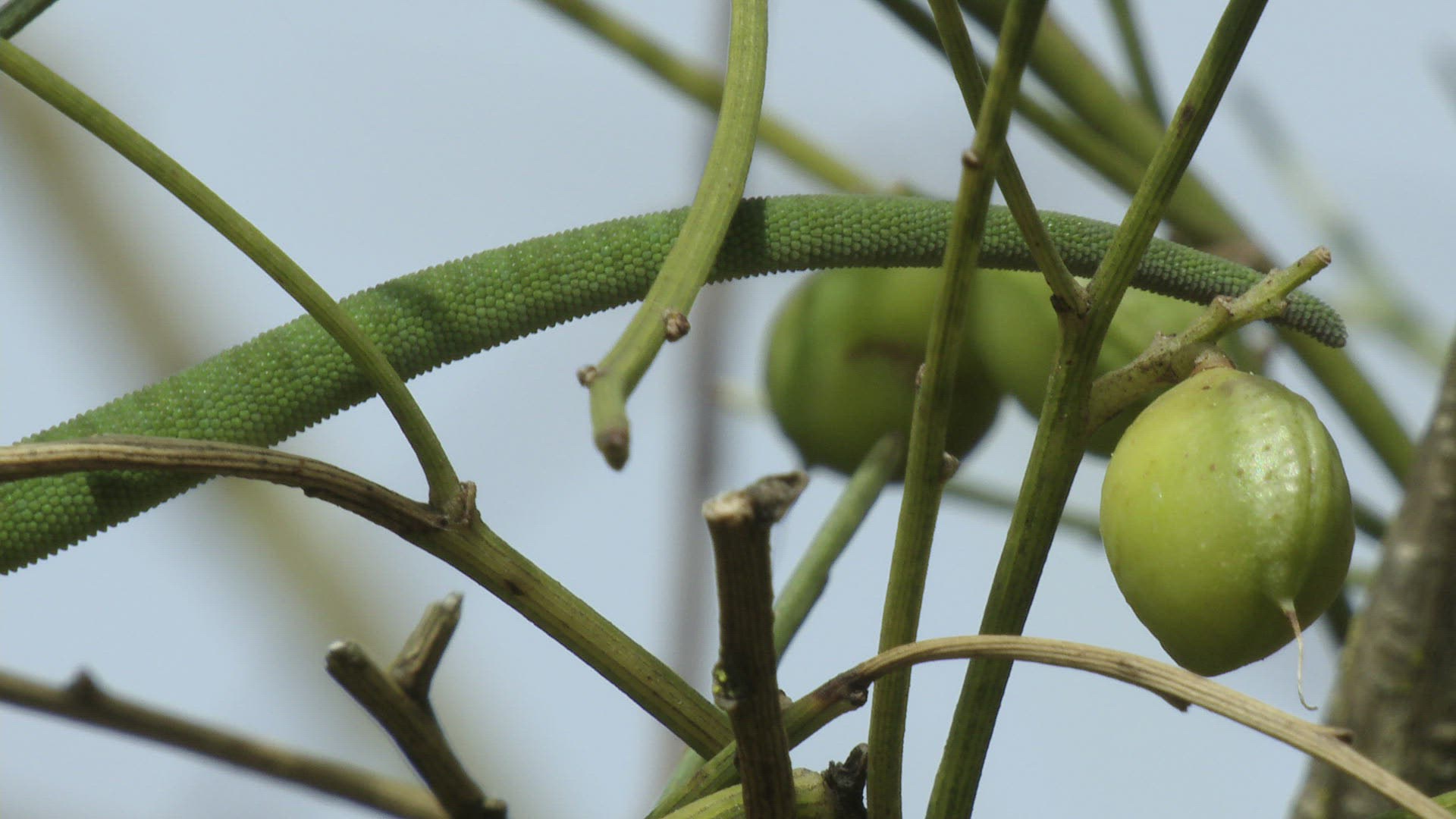 SLO MO MS Lion (Panthera leo) cub climbing tree / Kenya