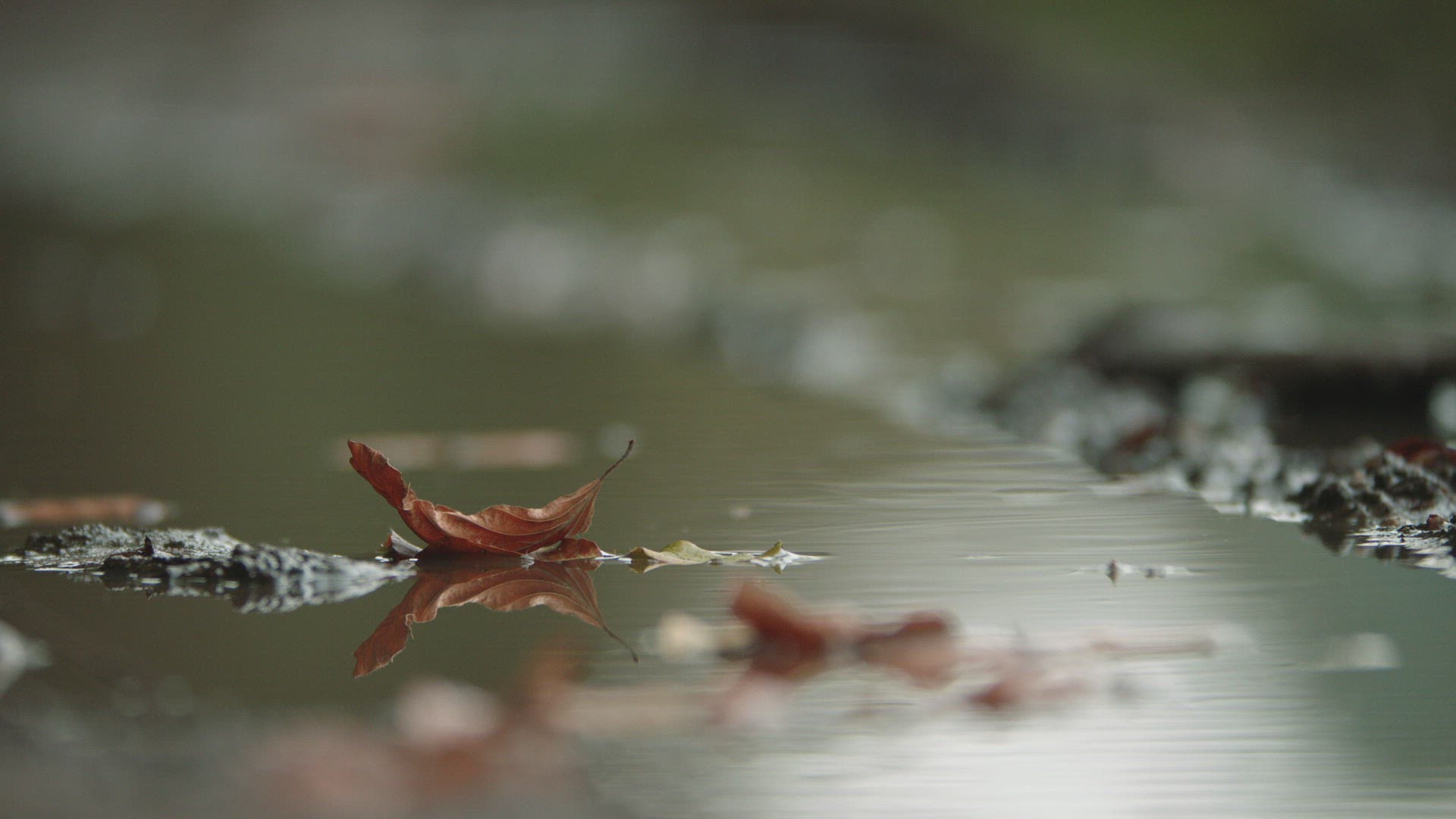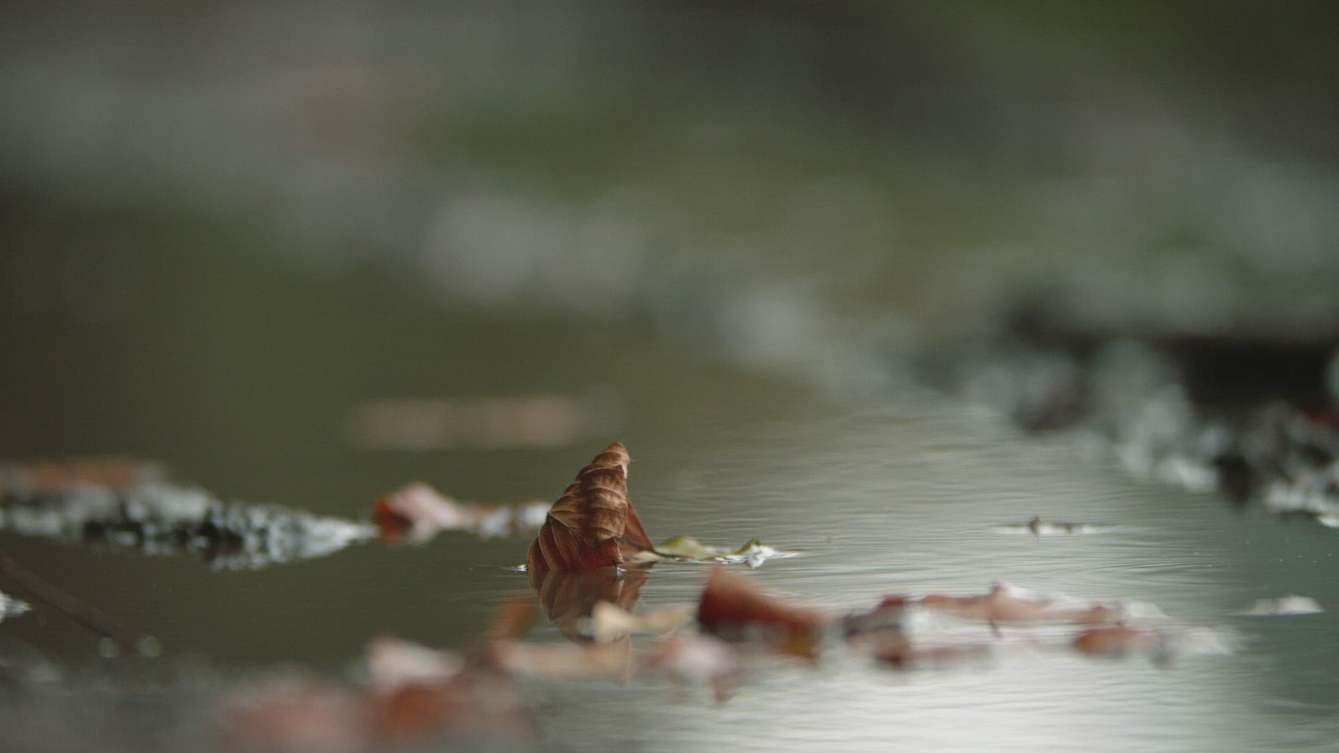 CU SELECTIVE FOCUS Dry leaves on water surface / Germany