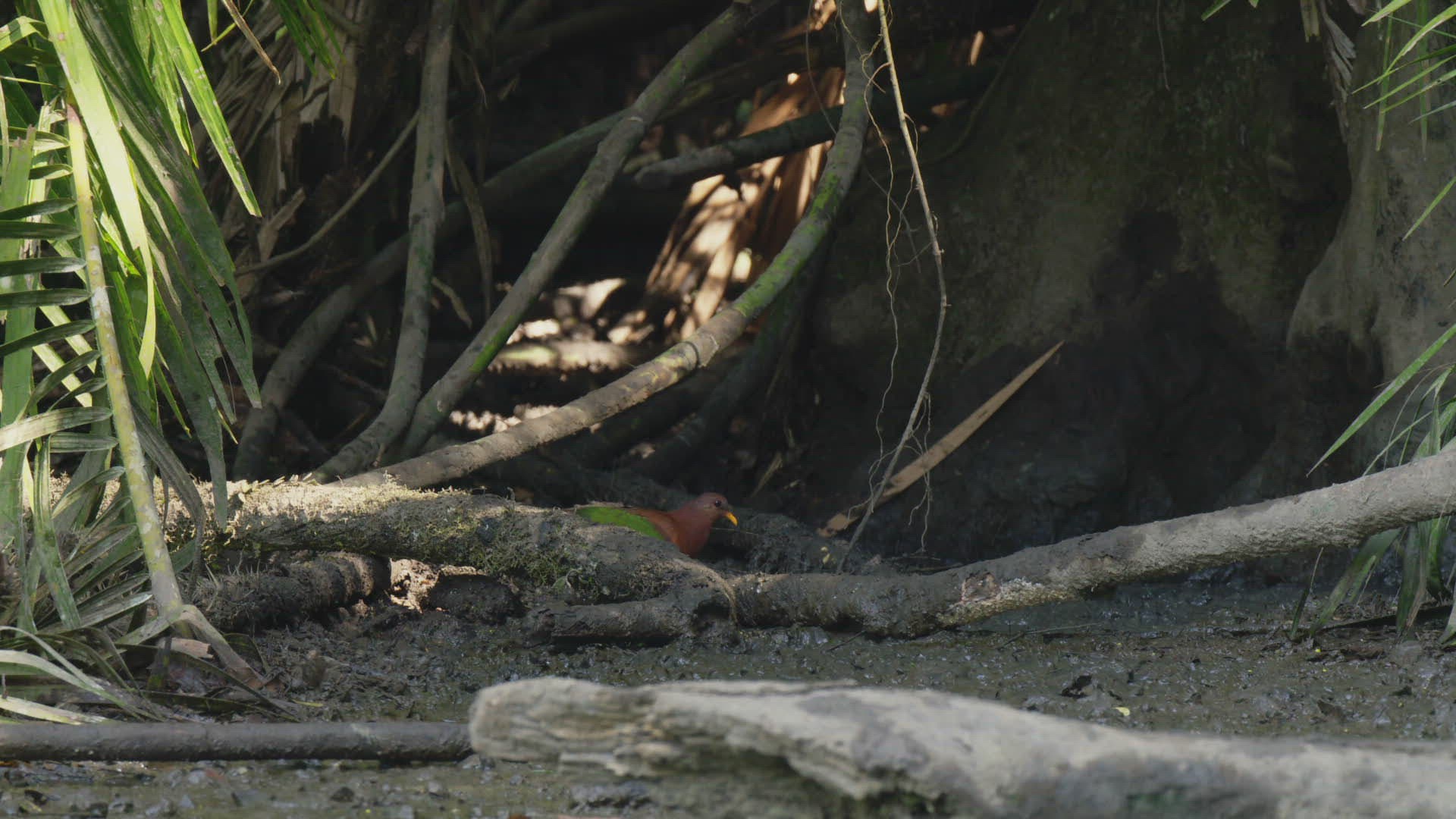 WS TS Asian Emerald Dove (Chalcophaps indica) walking on dirt / Sulawesi; Indonesia
