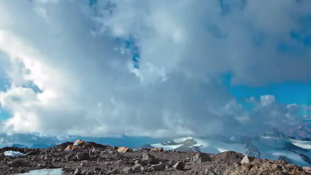 169485 - Aconcagua Time lapse - racing clouds at camp with climbers