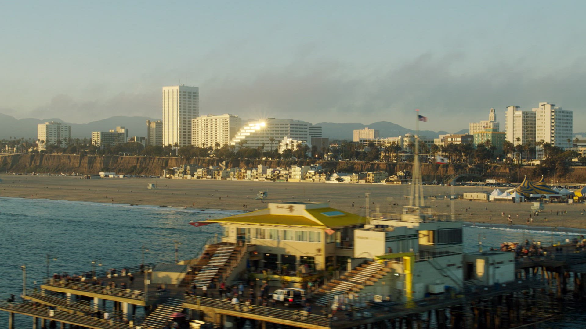 207522 - Two Girls Boogie Boarding on the Beach by the Pier