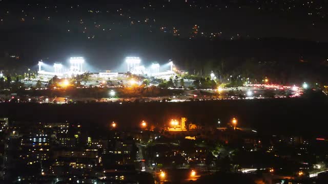 Time lapse of Dodger Stadium in downtown Los Angeles at night shot from building top
