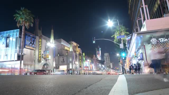 Hollywood Night Time Lapse -Intersection- Tilt Up
