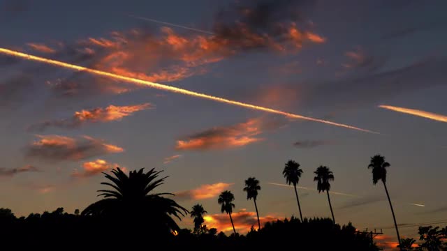 Time lapse footage of sunset over palm trees in Los Angeles, California