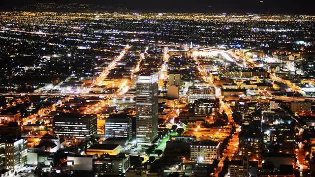 Time Lapse of downtown Los Angeles at night shot from building top