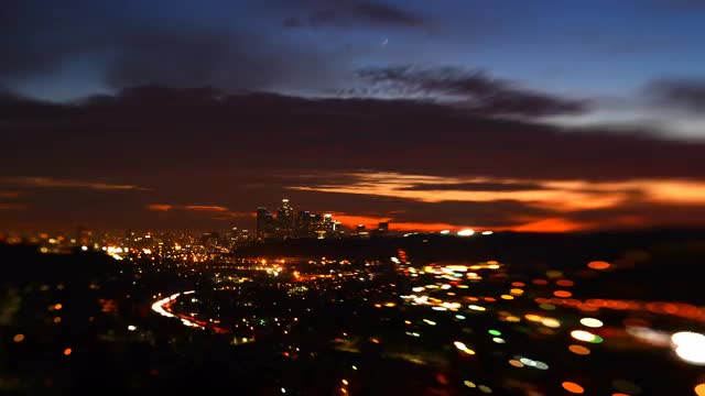 Tilt Shift Time Lapse of Downtown LA Skyline at Twilight